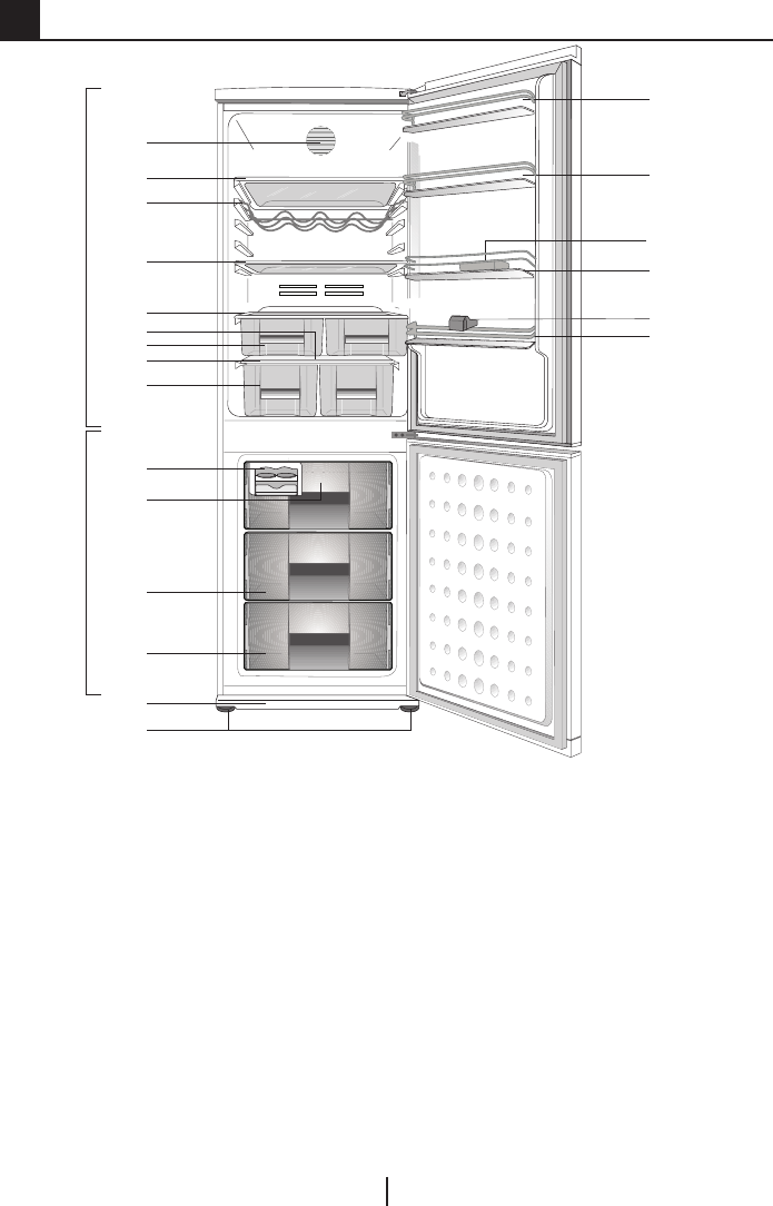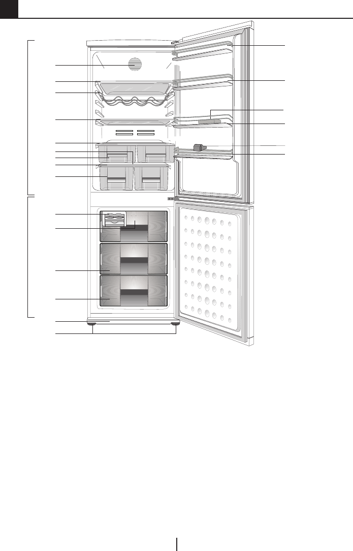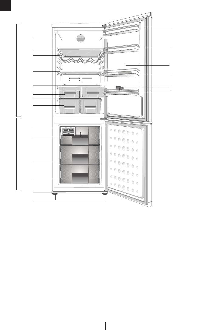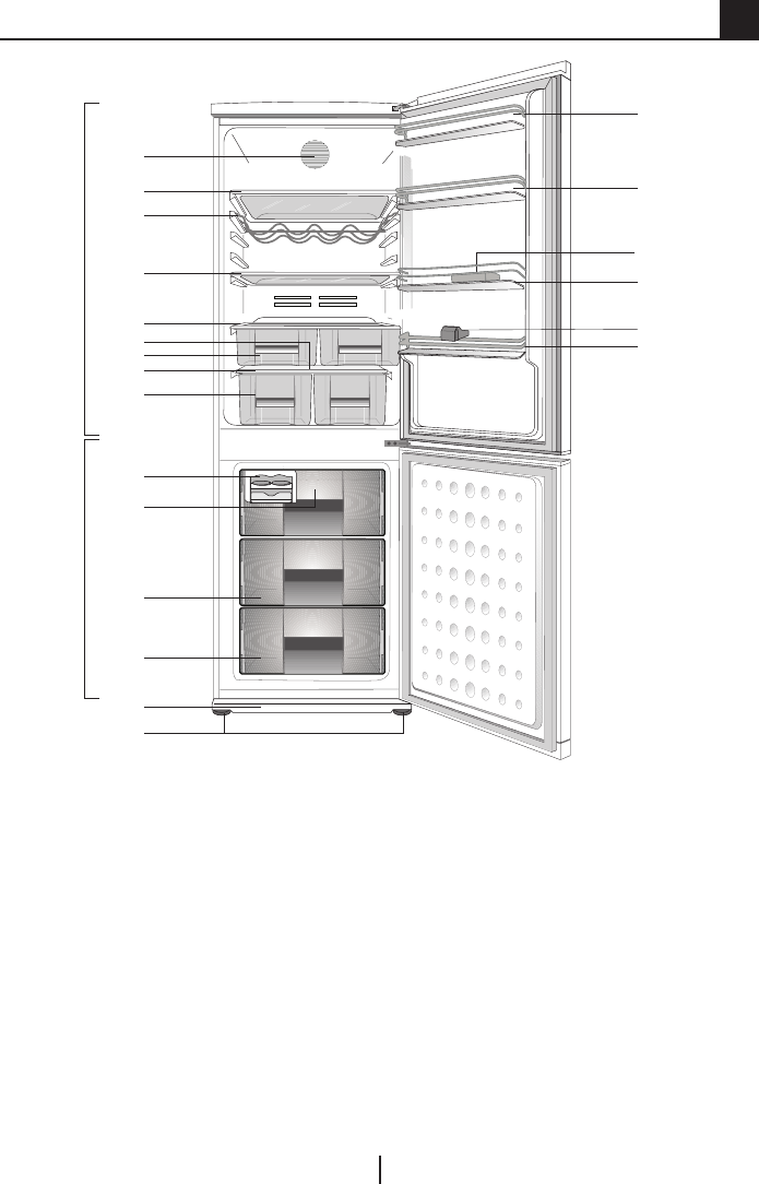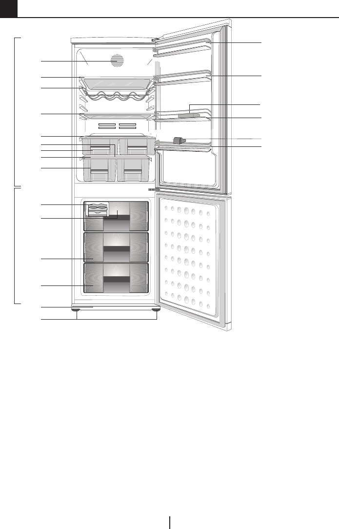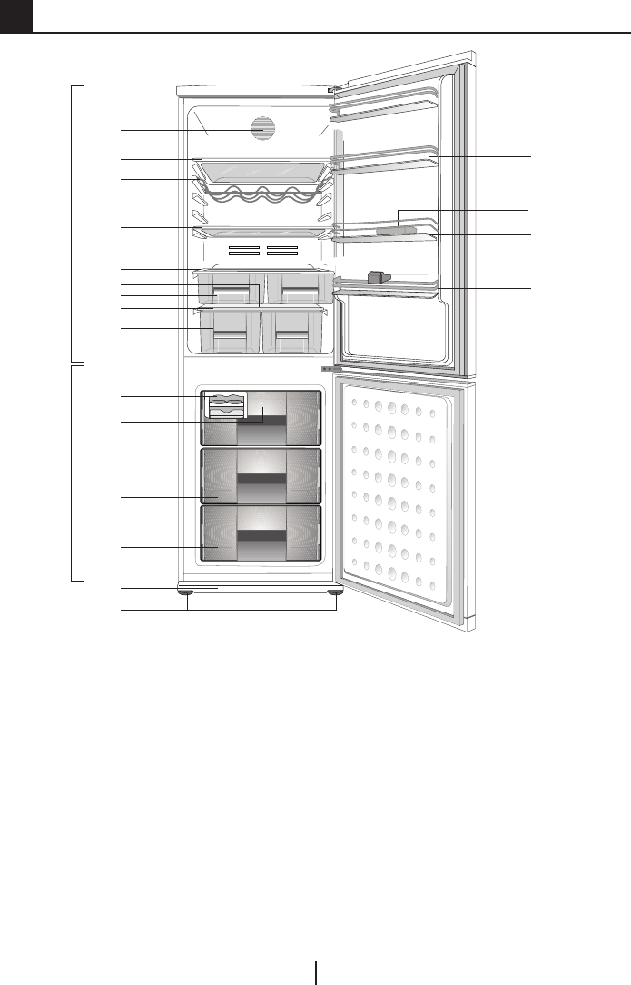 • Спакуваната храна може да го попречува затворањето на вратите. Преместете ја
