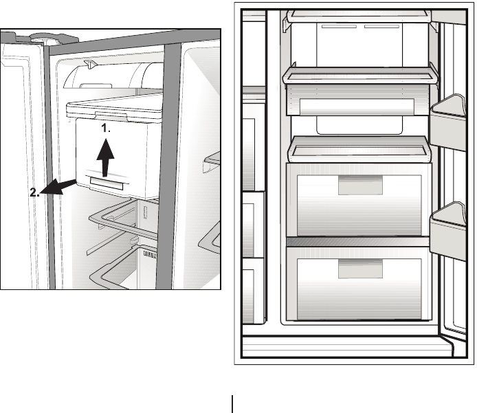 • Potraviny se možná dotýkají horní strany zásuvek. Upravte rozložení potravin v