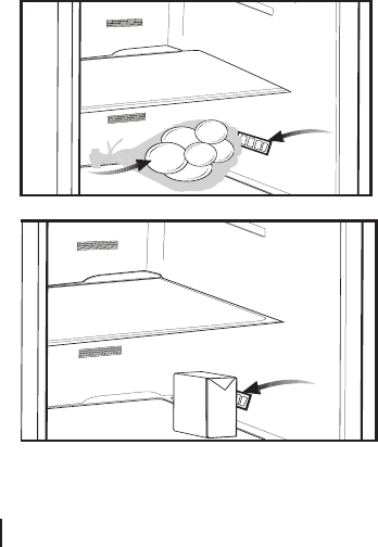 • Chladničku je nutno vyčistit uvnitř. Vyčistěte vnitřek chladničky houbičkou, teplou