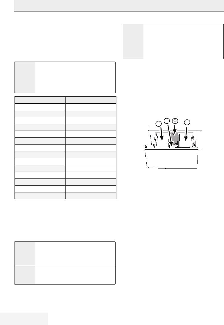 • Putdetergentintothemachinesuitablefortheprogrammesandmaximumloadsindicatedinthe“Programme