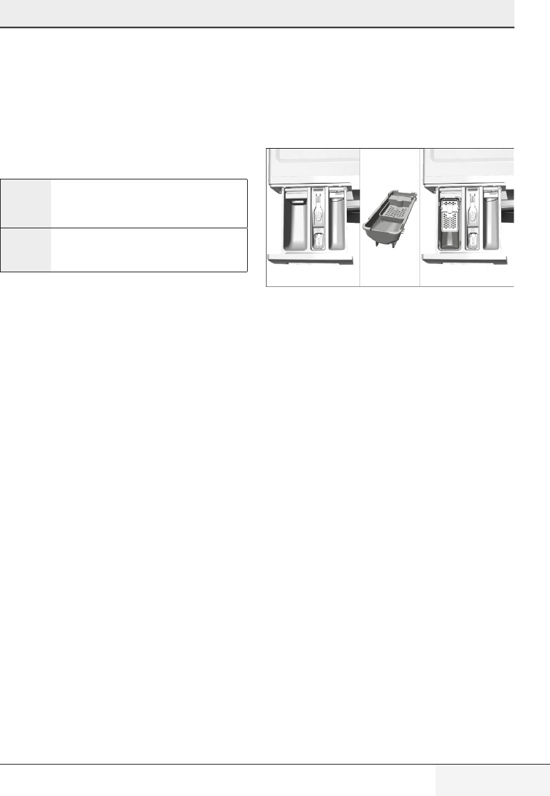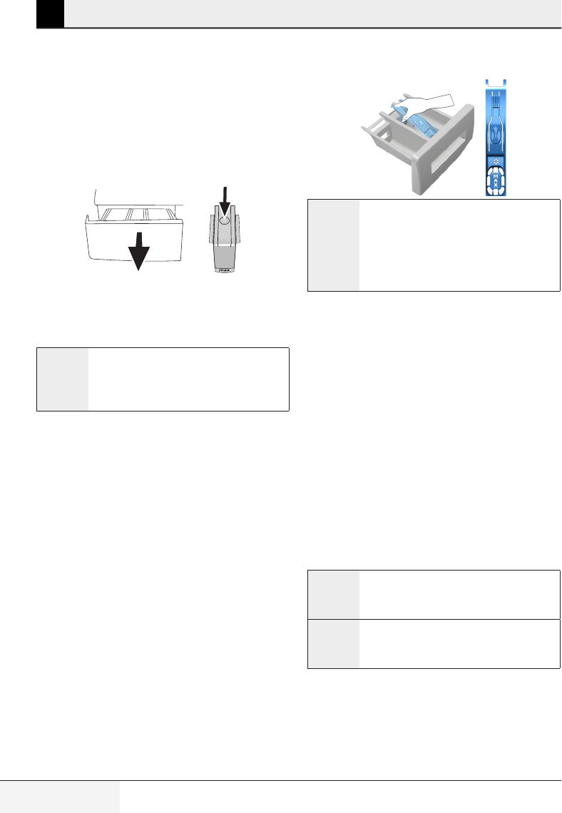 • Detergentisputinwetdrawer.>>>Dry the detergent drawer before putting in detergent.