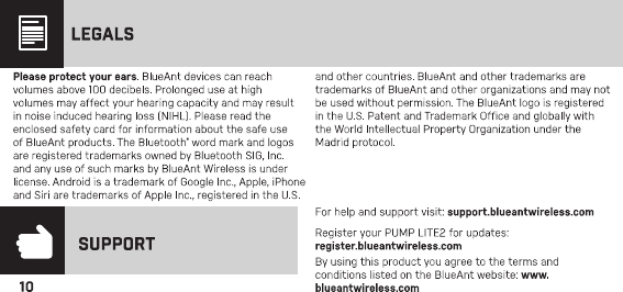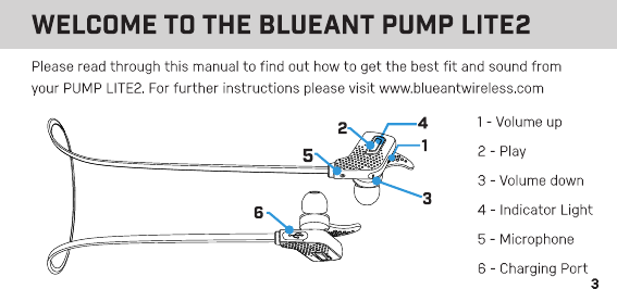 BlueAnt Wireless PUMPLITE2 Bluetooth earphone User Manual