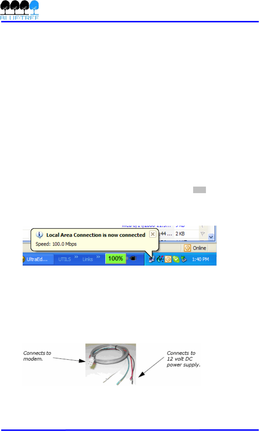 The modem includes a 15-foot power cable with 2A in-line fuse with, on one end, a 4-