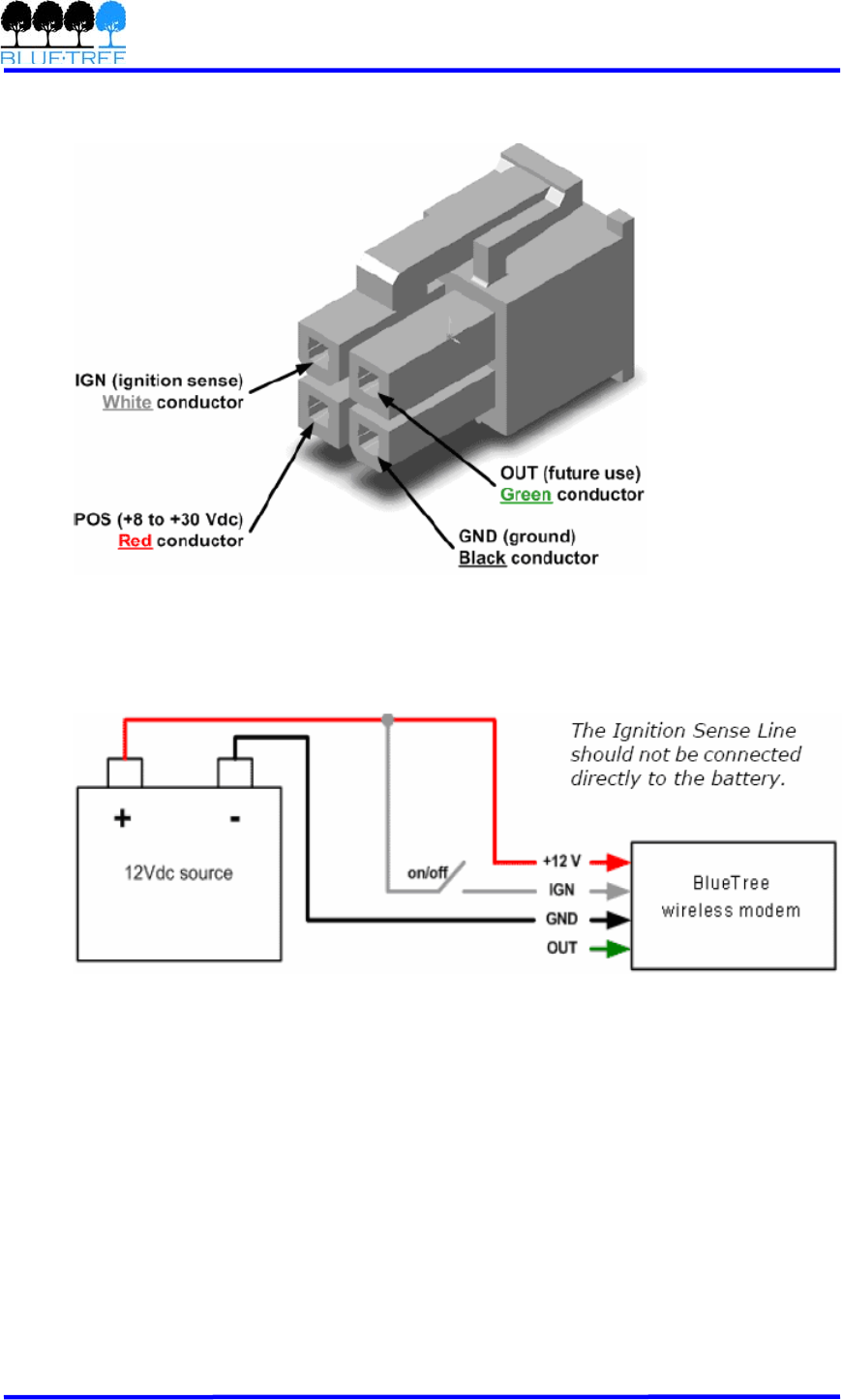 turn on when the ignition sense line is set between 8 and 30 volts DC. The modem will