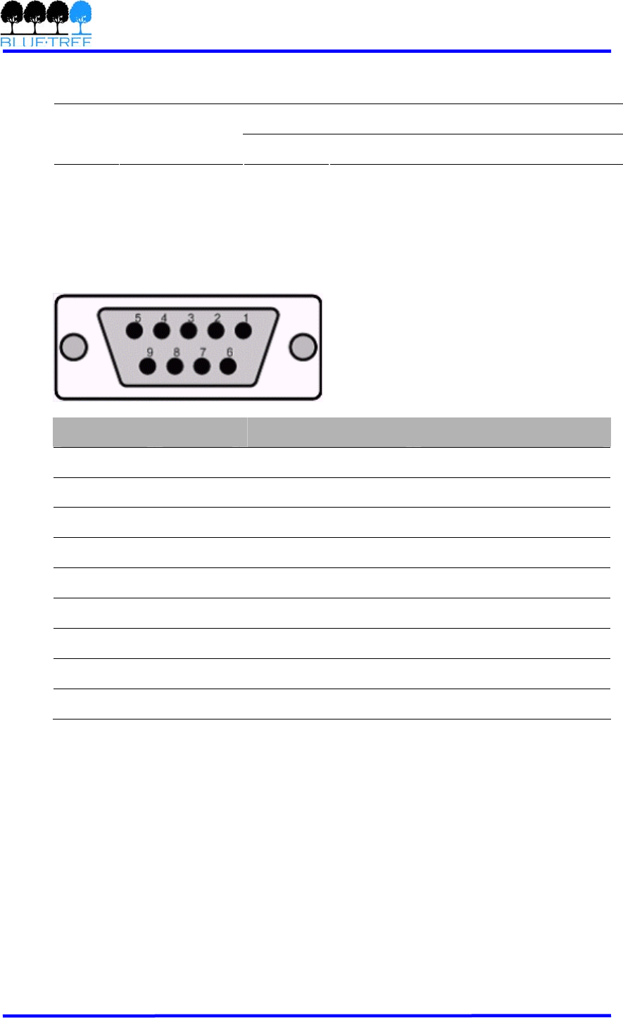 through RS-232 cable with DB9 male to DB9 female connectors.