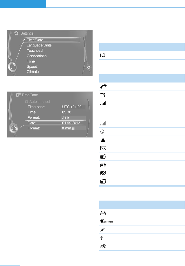 - Selection lists in the instrument cluster