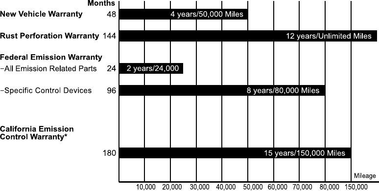 ²The California Emission Control System Limited Warranty coverage periods of 15 years/150,000 miles