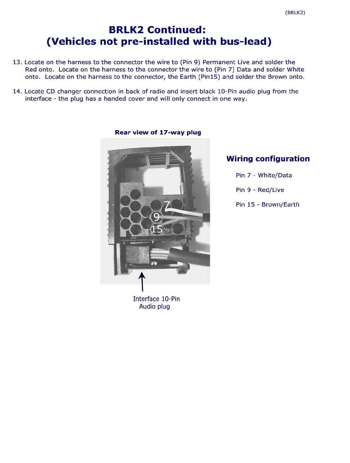 harness to the connector, the Earth (Pin 15) and solder the Brown onto (See attached diagram for