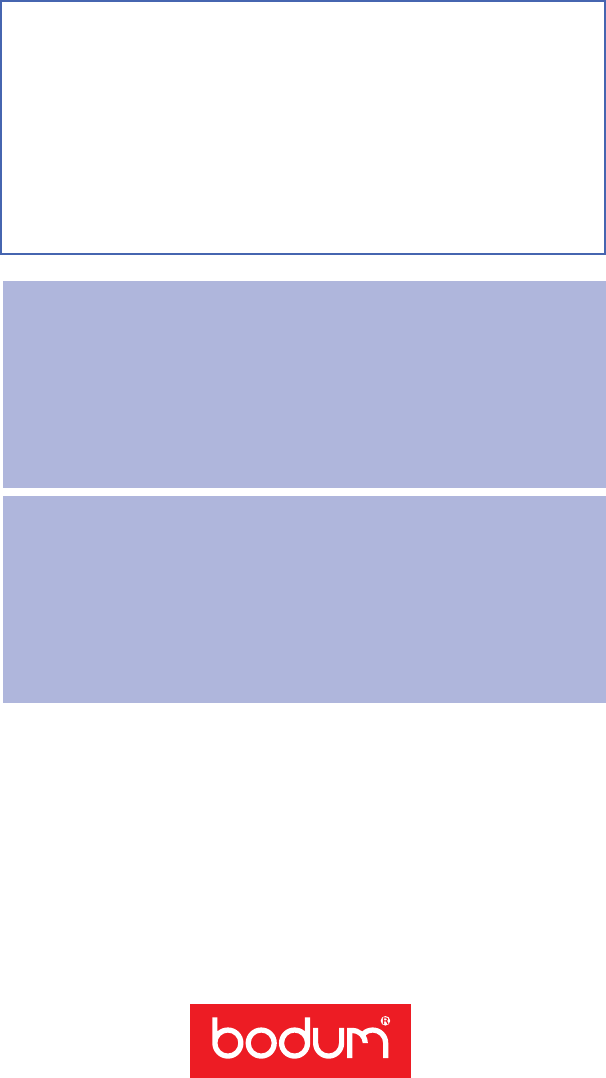 FREE CALL – 1.800.23.BODUM/WARRANTY@BODUMUSA.COM