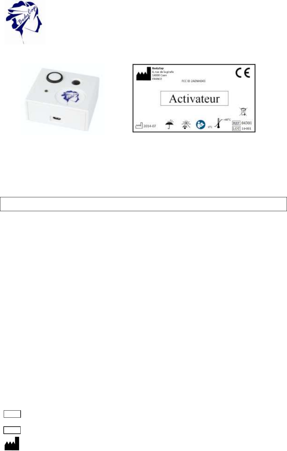 Bodycap 043 The Activator is intended to activate the capsule for Telemetry System. User Manual User guide