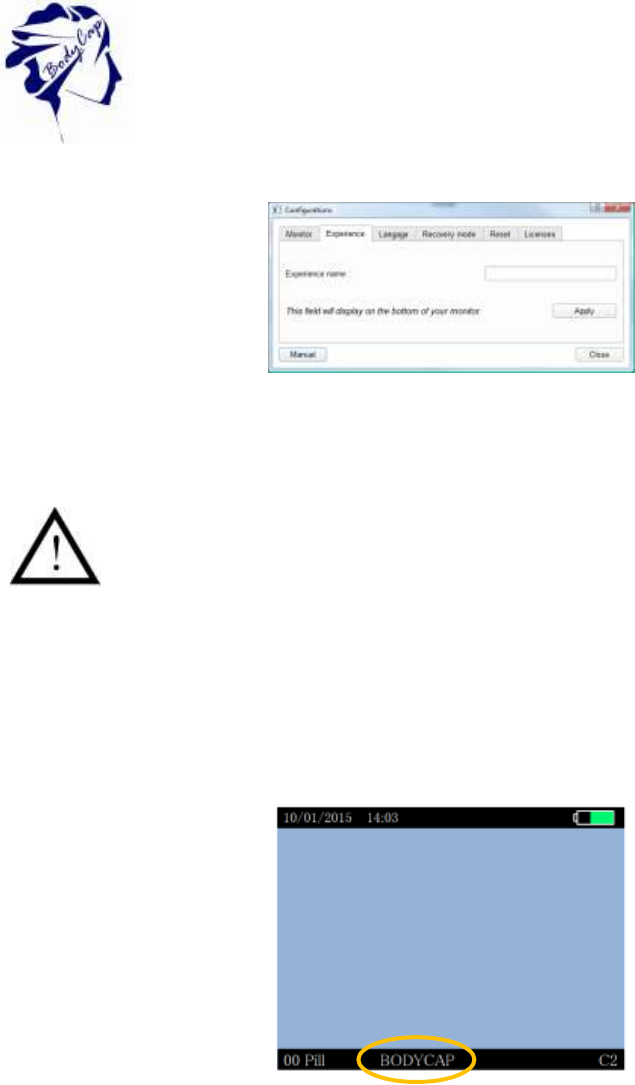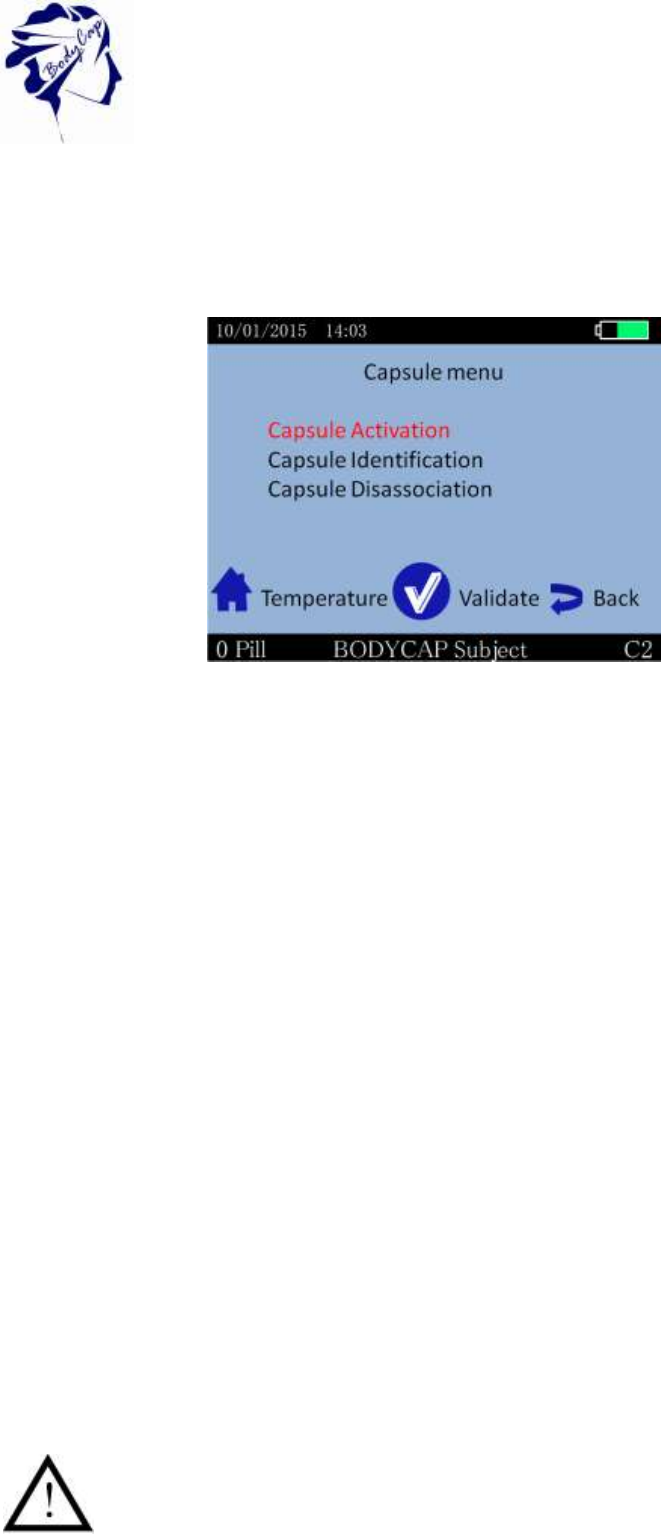 Bodycap The Activator is intended to activate the capsule for Telemetry System. User guide