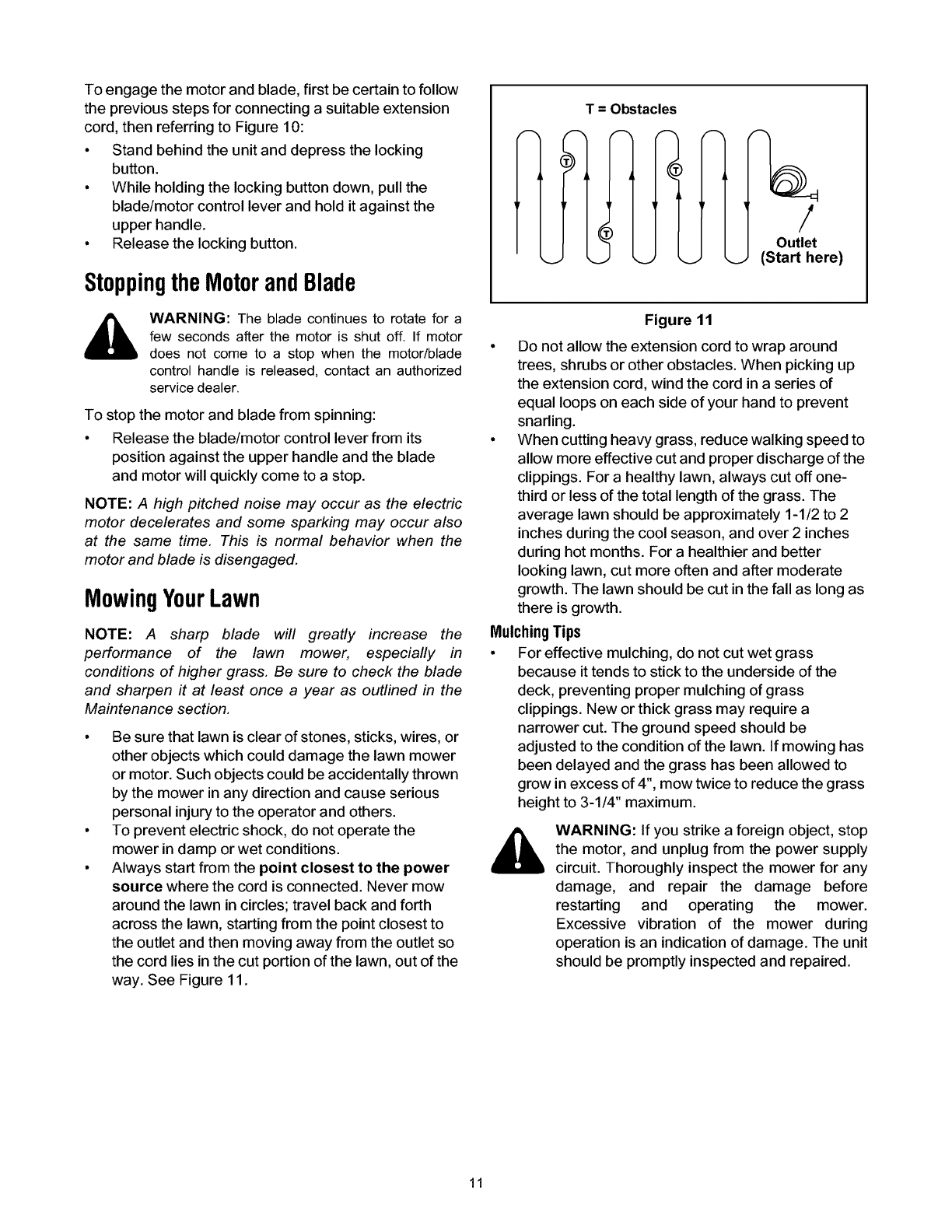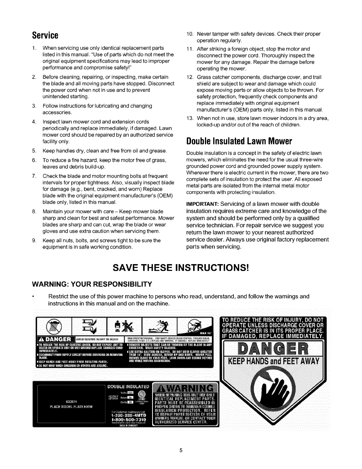 When using electric lawnmowers, basic safety precautions should always be followed to reduce the risk of fire, electric