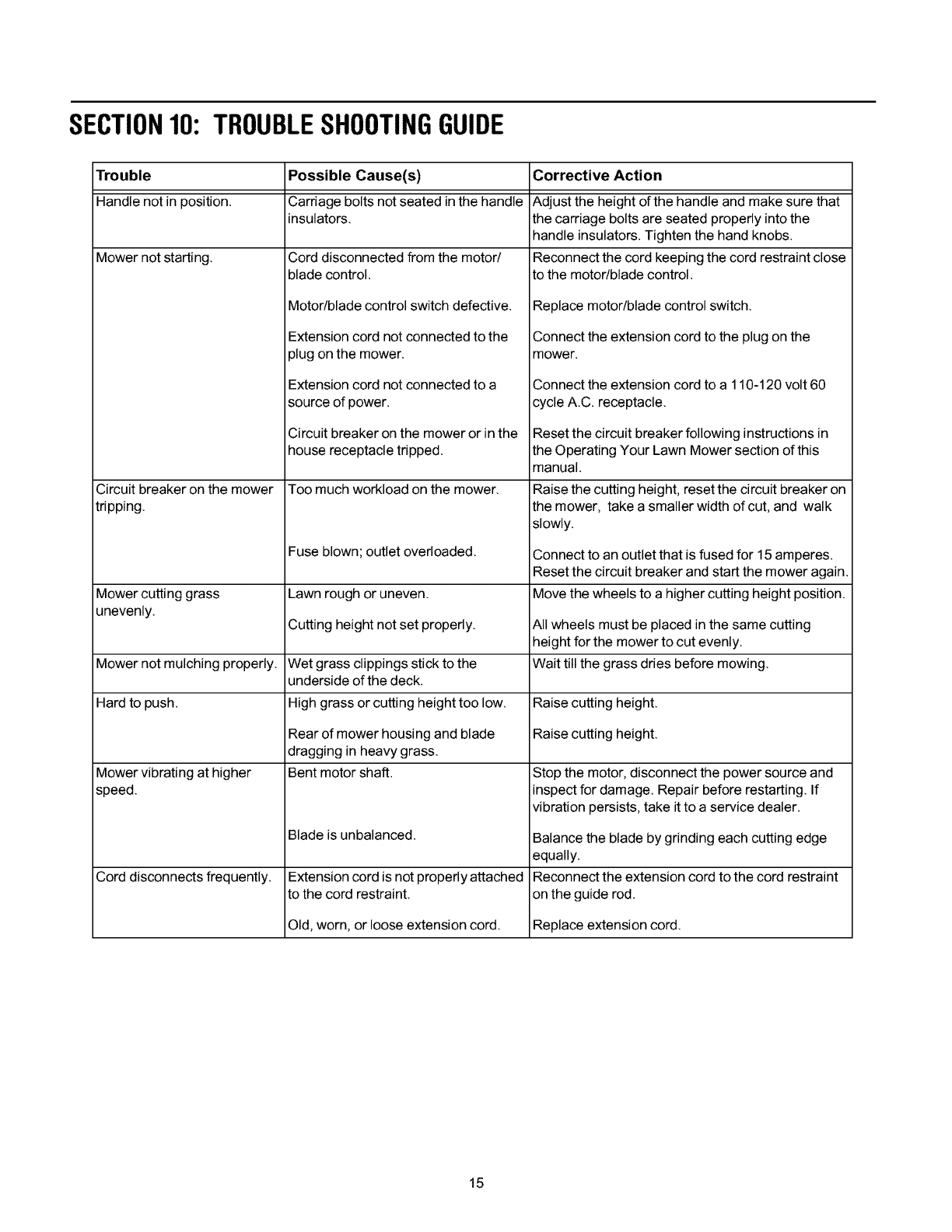 Assembling Your Lawn Mower 7 Trouble Shooting 15
