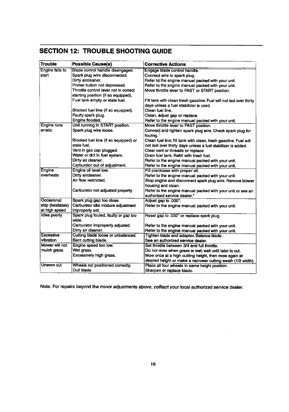 Bolens 416 User Manual LAWN MOWER Manuals And Guides L9060291