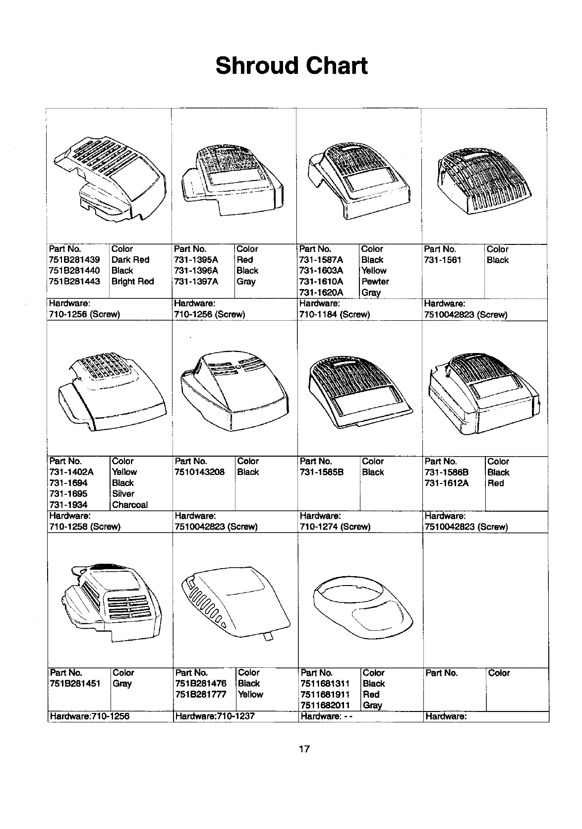 bags, rider deck wheels, seats, snow thrower skid