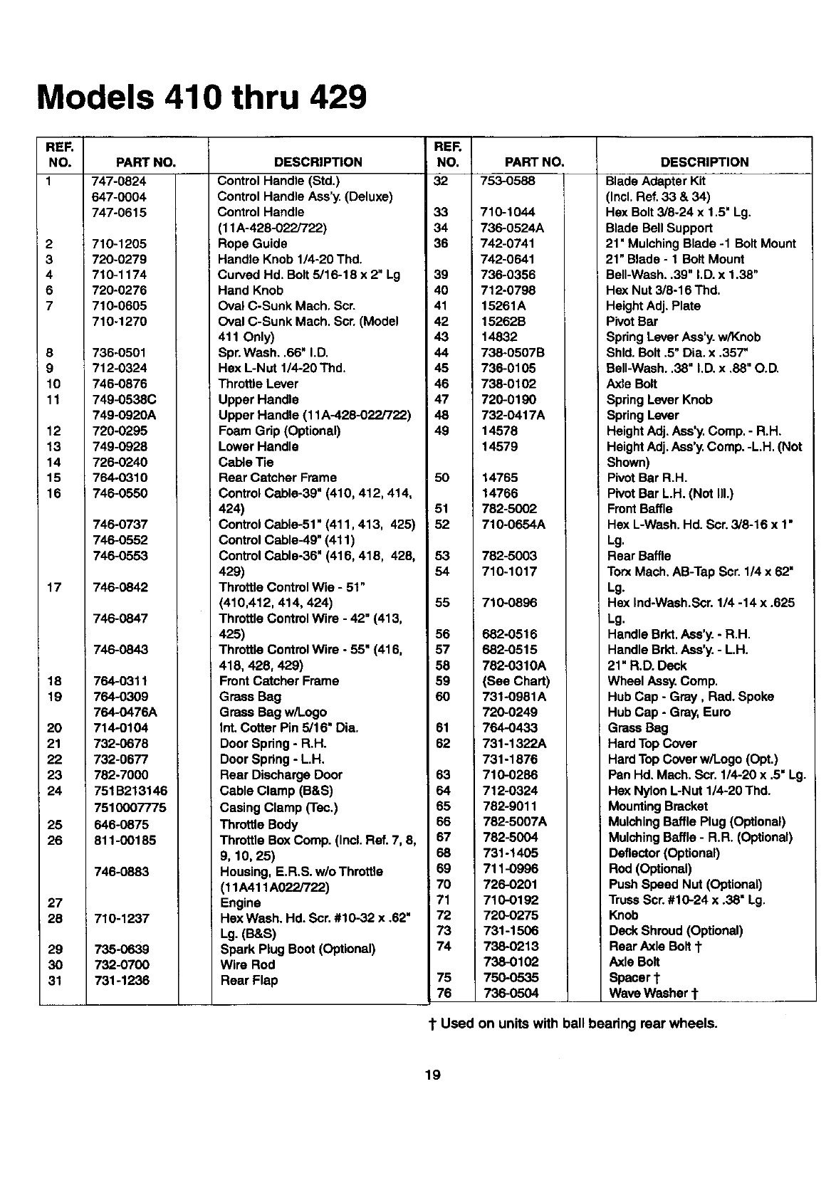 1"Used on units with ball bearing rear wheels.