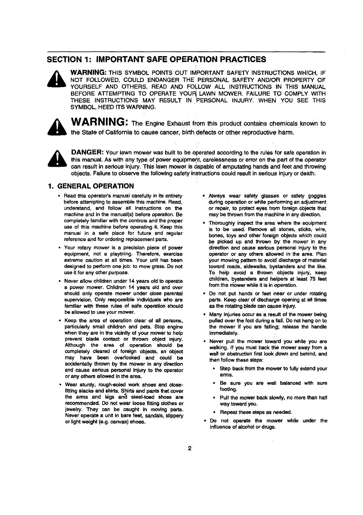 &DANGER: Your lawn mower was built to be operated according to the rules for safe operation in