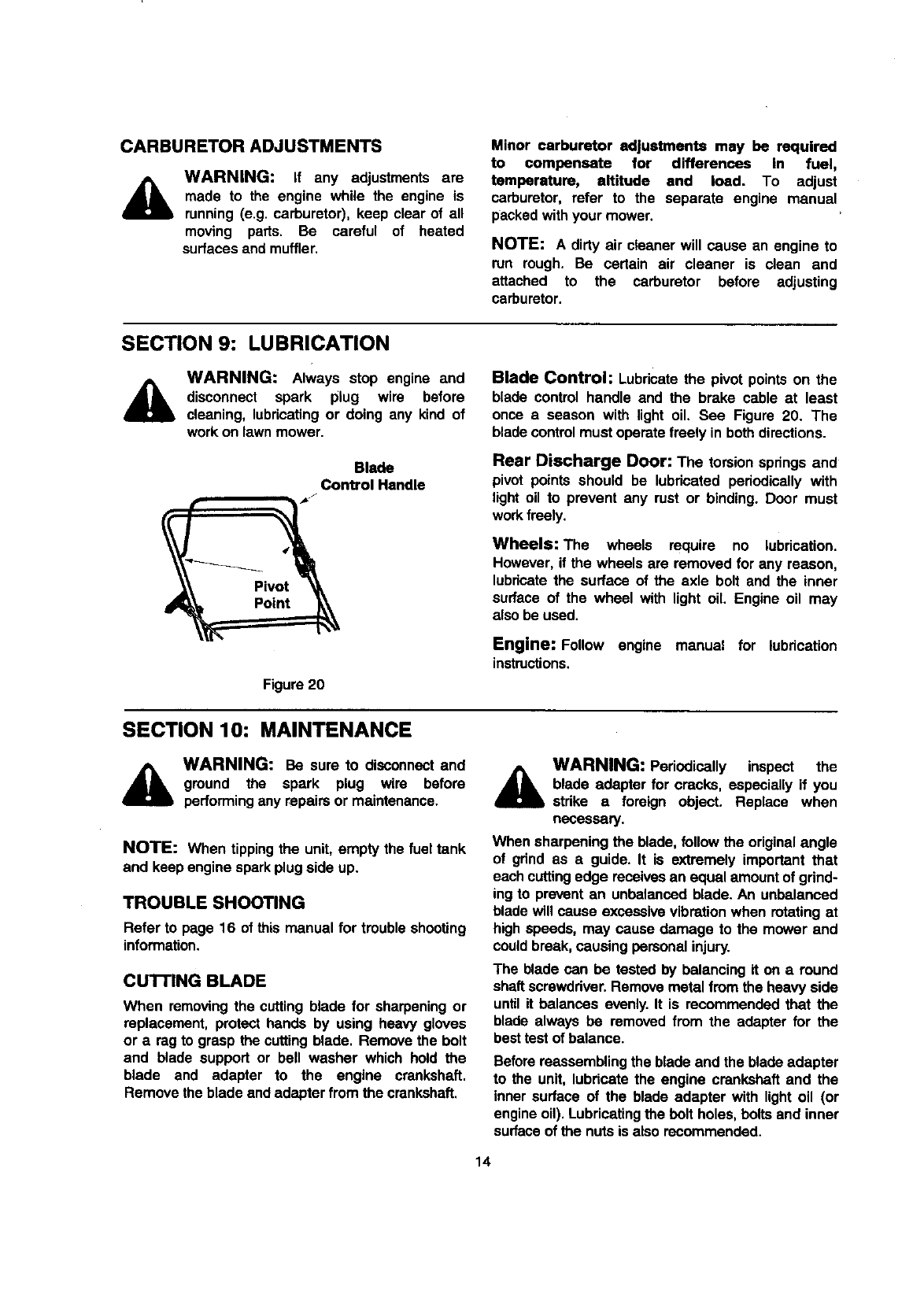 brake adjustments, clutch adjustments or deck