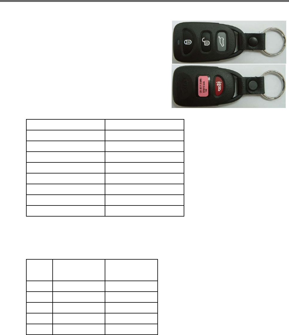 - Button marking are LOCK, UNLOCK, TAIL GATE UNLOCK/GLASS OPEN, PANIC