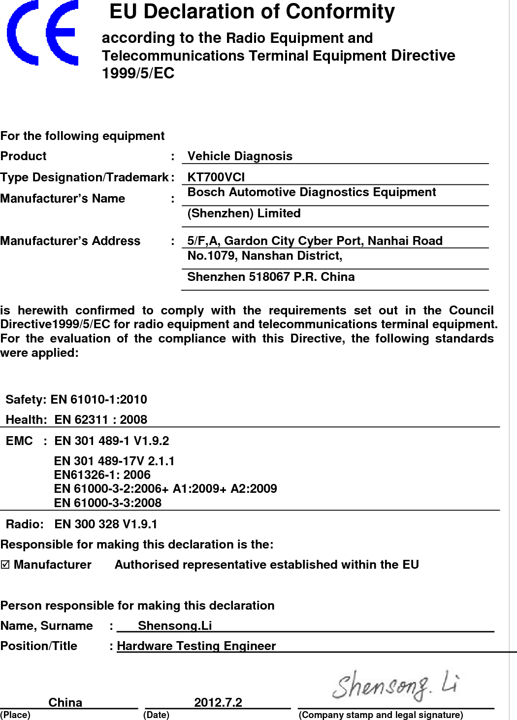 Bosch Automotive Diagnostics Equipment (Shenzhen) Limited WIFI device with USB, RJ45 power for data transfer