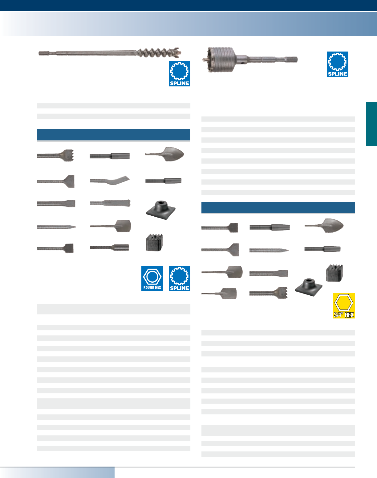 Drive System Round Hex SDS-max® SDS-max® SDS-max® 3/4" Hex 1-1/8" Hex Collar 1-1/8" Hex Collar