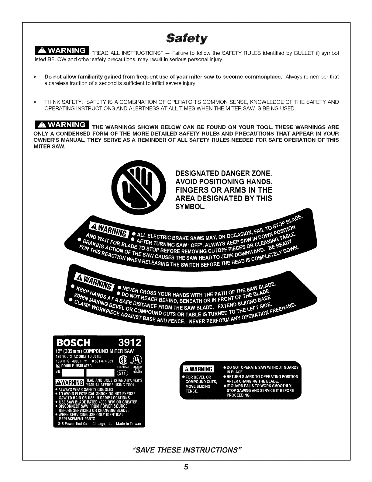 Bosch 3912 User Manual SAW Manuals And Guides 1309228L