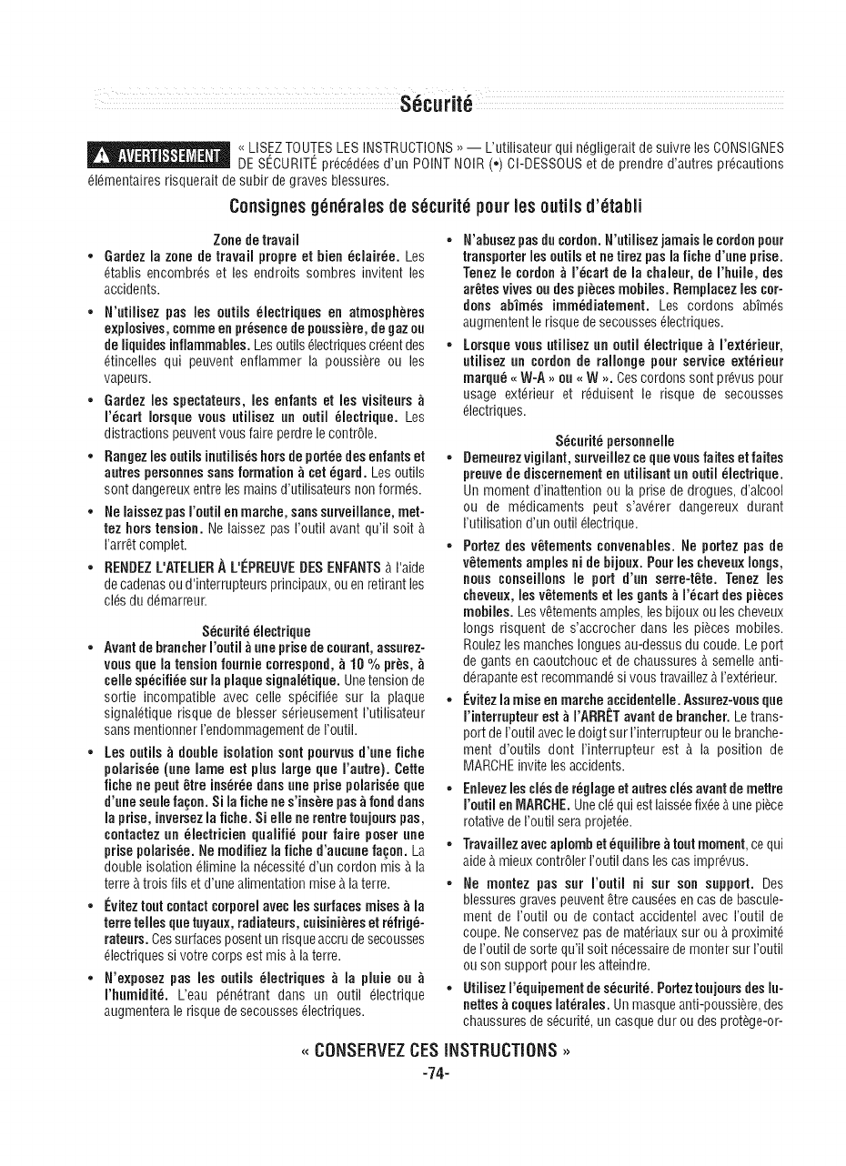CETTEGARANTIE LIMITEE NE S'APPLIQUE QU'AUX OUTILS ELECTRIQUES PORTATIFSETD'ETABLI VENDUS AUX ETATS-UNIS D'AMERIQUE, AU CANADA