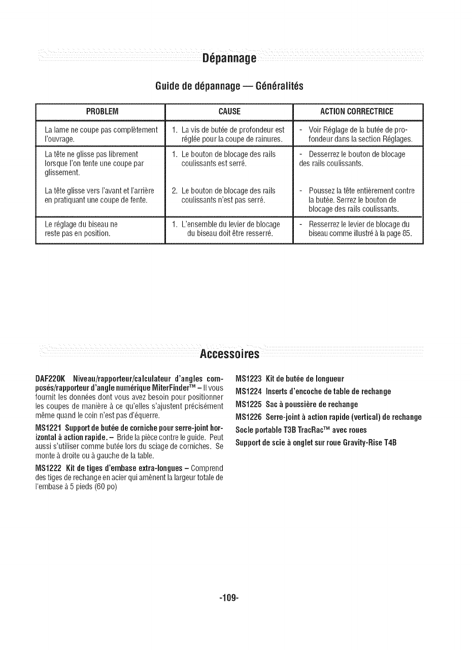 LA PRESENTEGARANTIE NE S'APPLIQUE PASAUX ACCESSOIRESTELS QUELAMES DESCIESCIRCULAIRES, MECHESDE PERCEUSES,FERSDE TOUPIES,