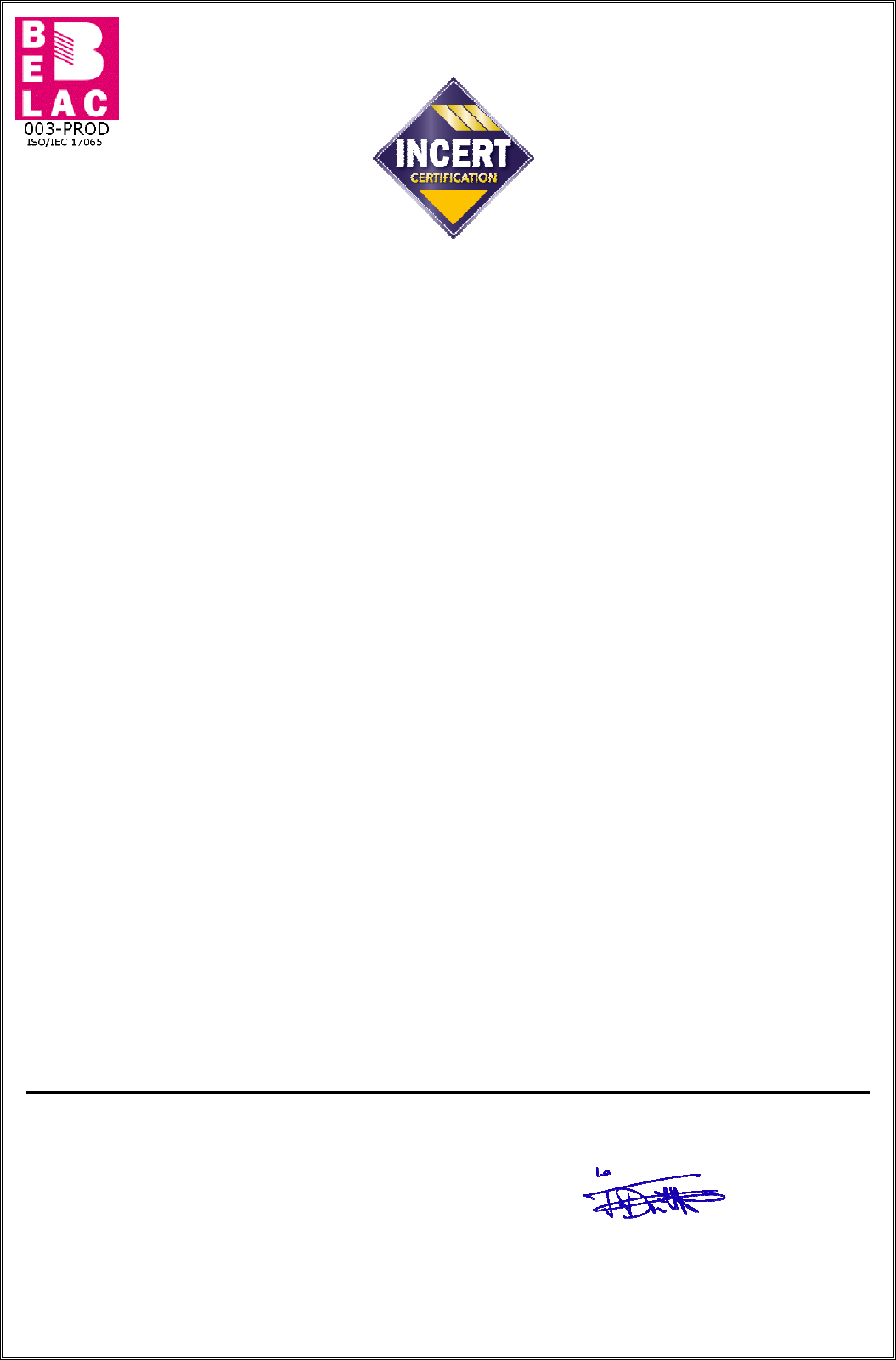Dit certificaat werd afgeleverd onder de door het INCERT merk