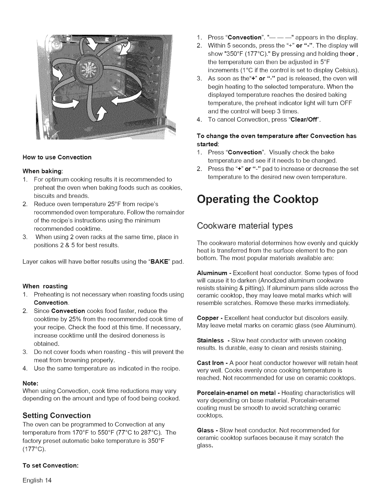 Operating the Cooktop ................ 14