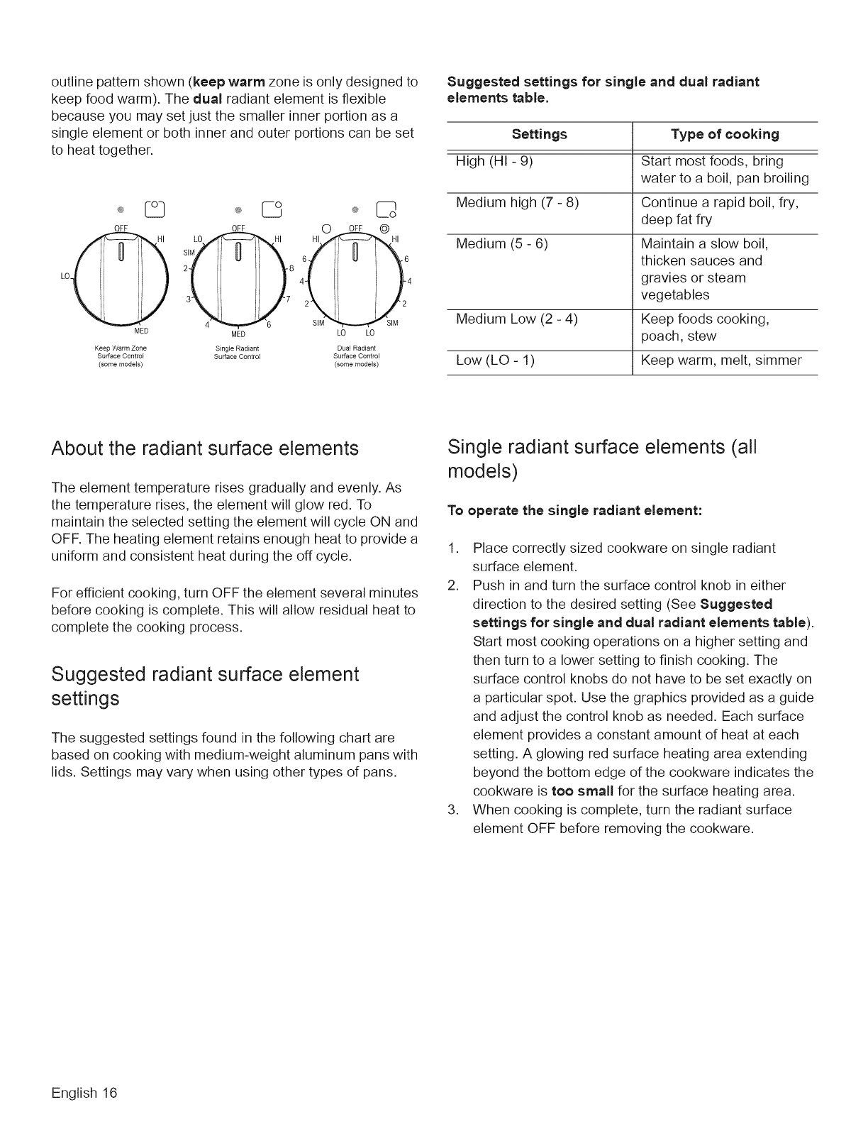 Types of Cooktop Elements ............. 15