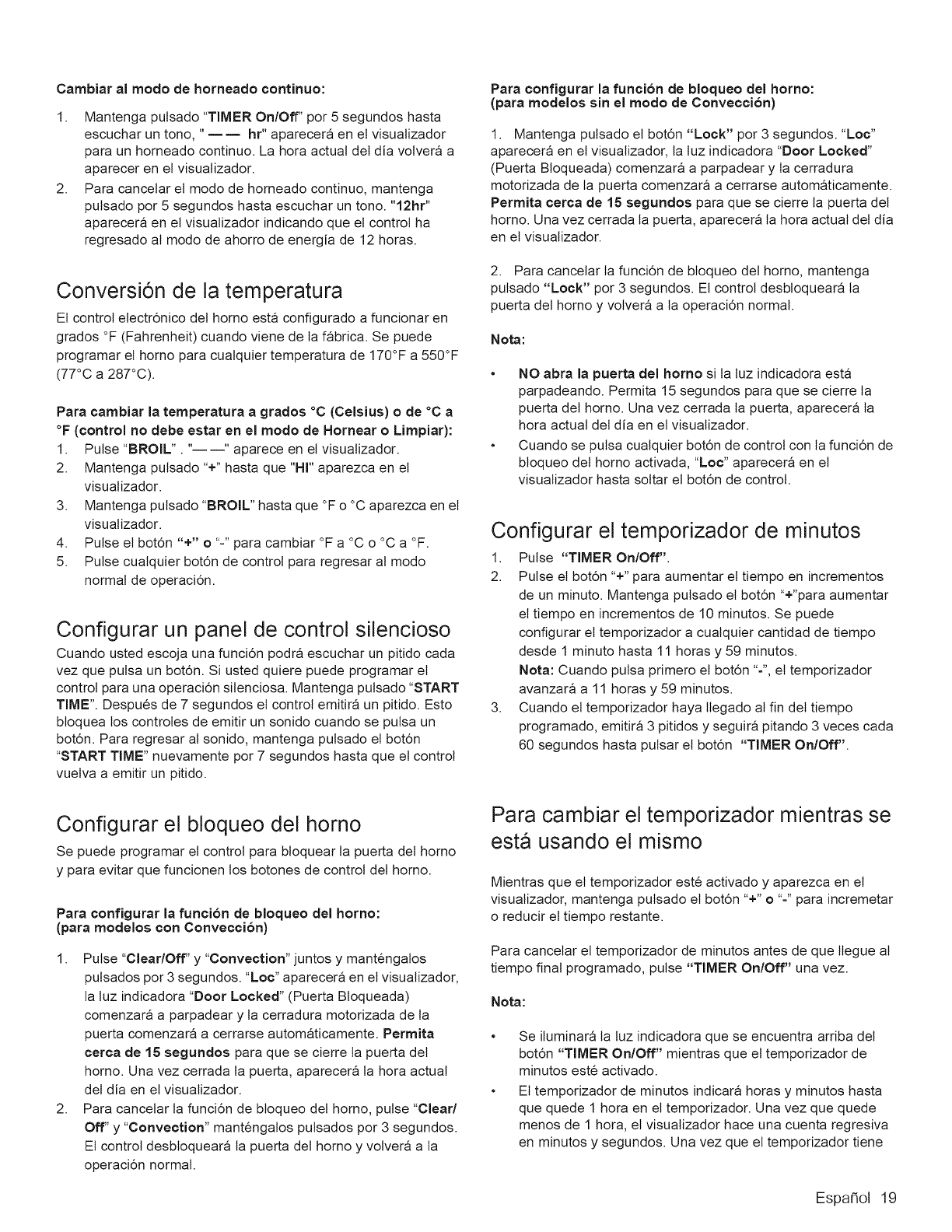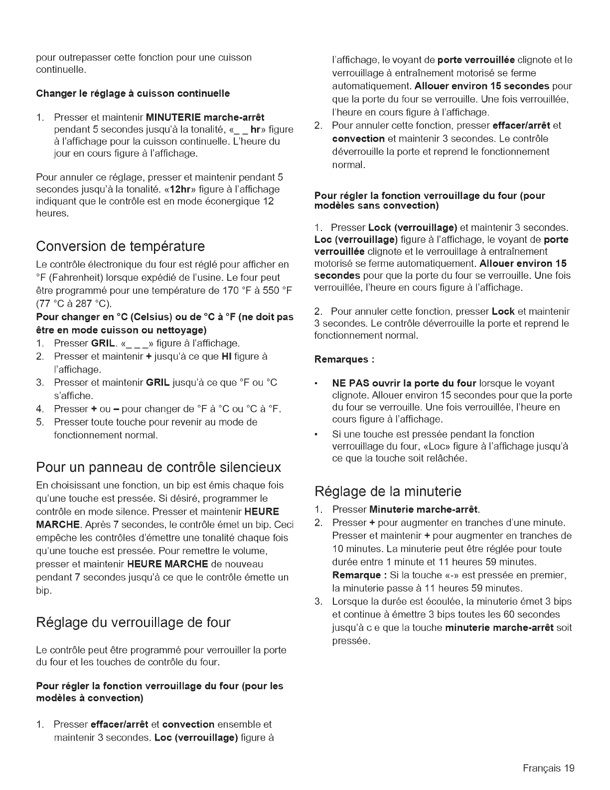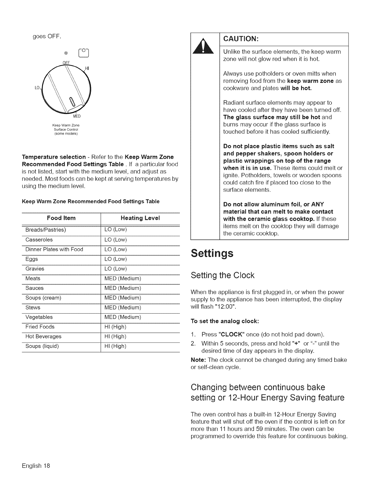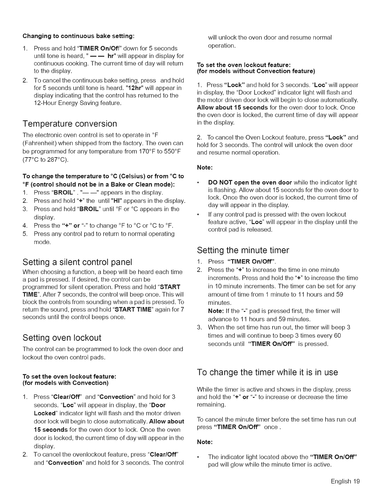 Setting Oven Lockout .................. 19