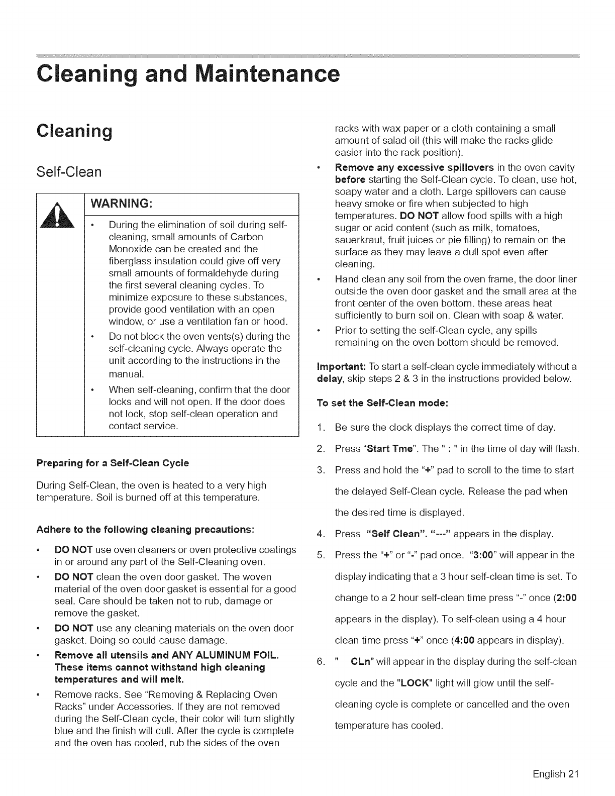 Self-Clean .......................... 21