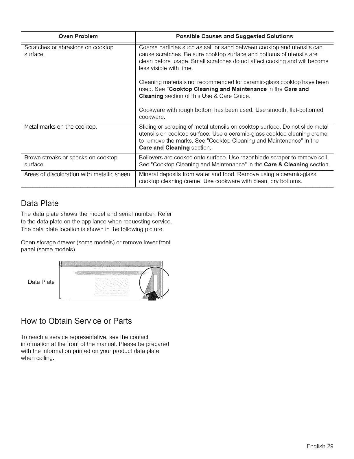 Cooktop Cleaning and Maintenance ....... 23