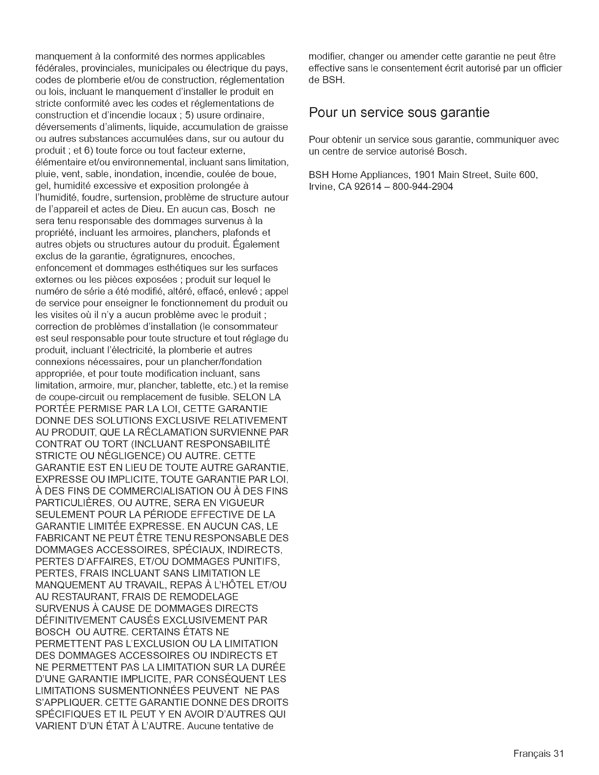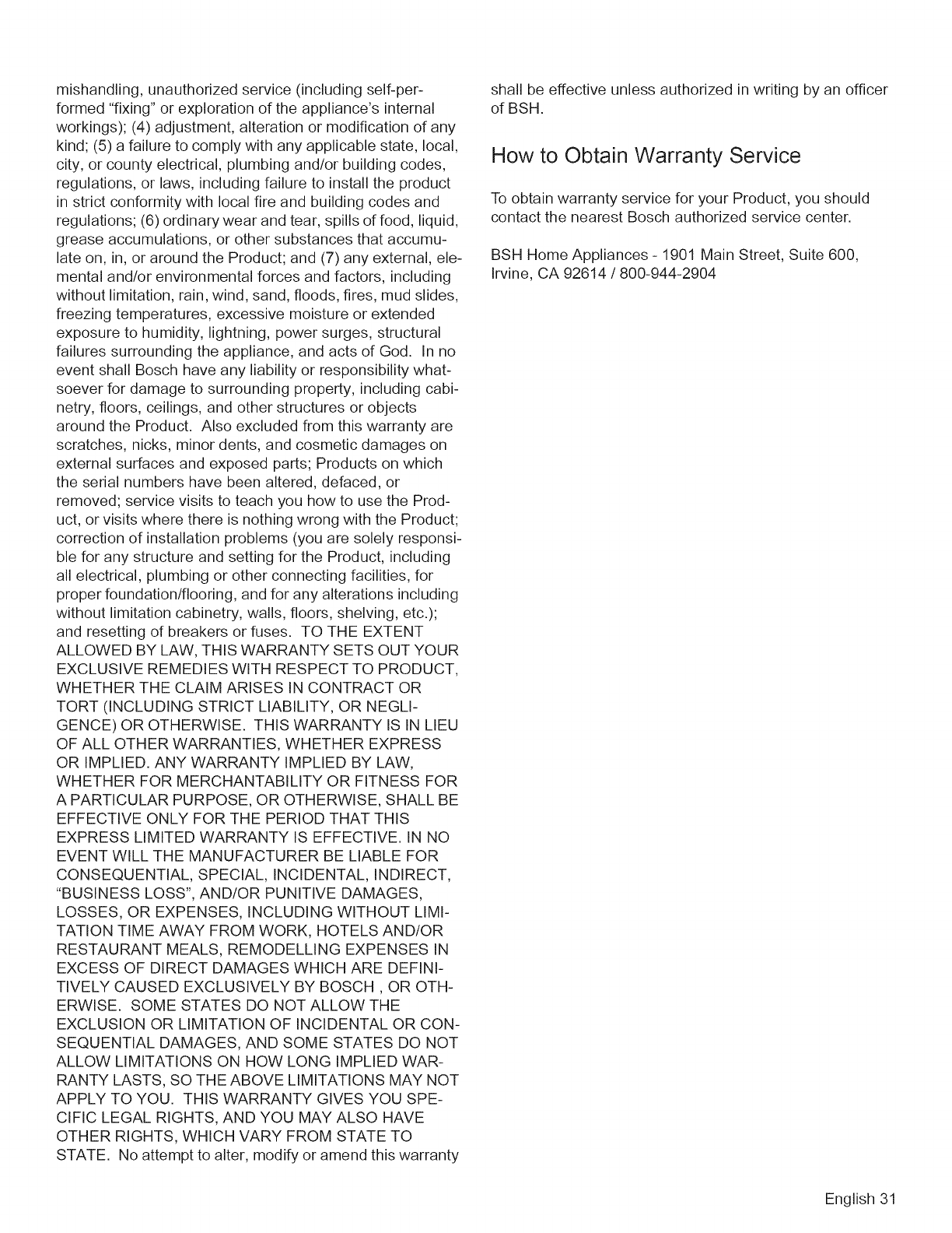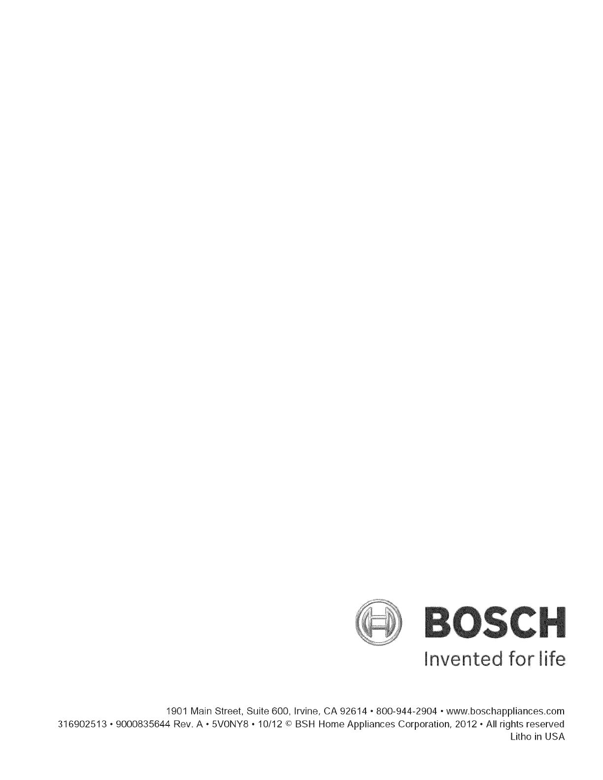 1901 Main Street, Suite 600, Irvine, CA 92614 o800-944-2904 owww.boschappliances.com