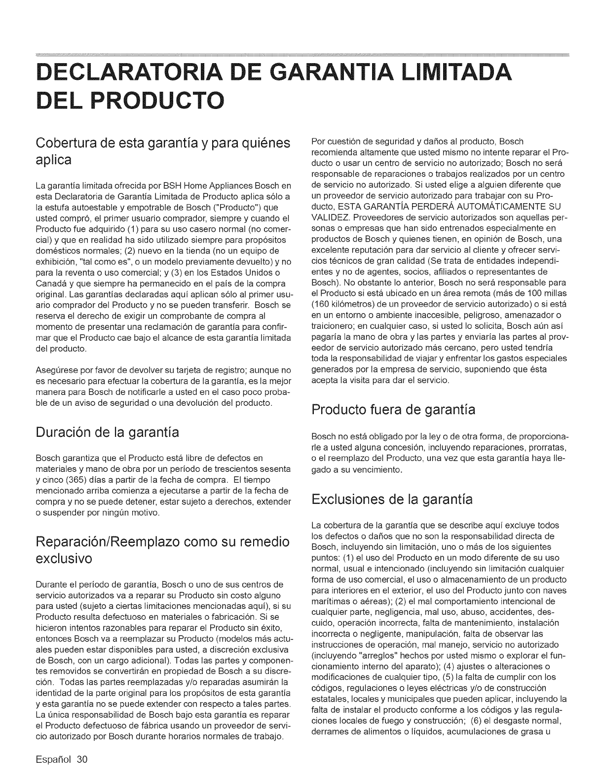Bosch no esta obligado pot la tey o de otra forma, de proporciona-