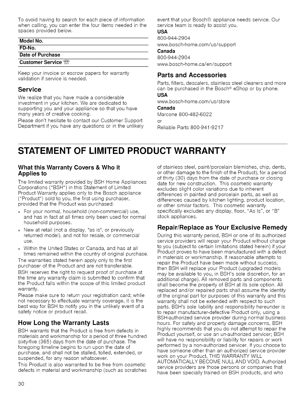 STATEMENT OF LIMITED PRODUCT WARRANTY ... 30
