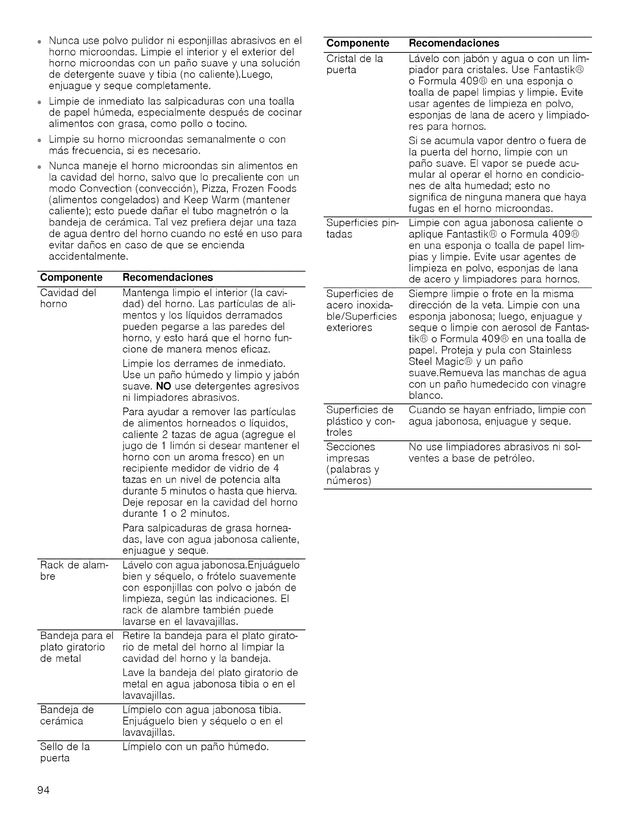 o Desgaste habitual, derrames de alimentos, liquidos,