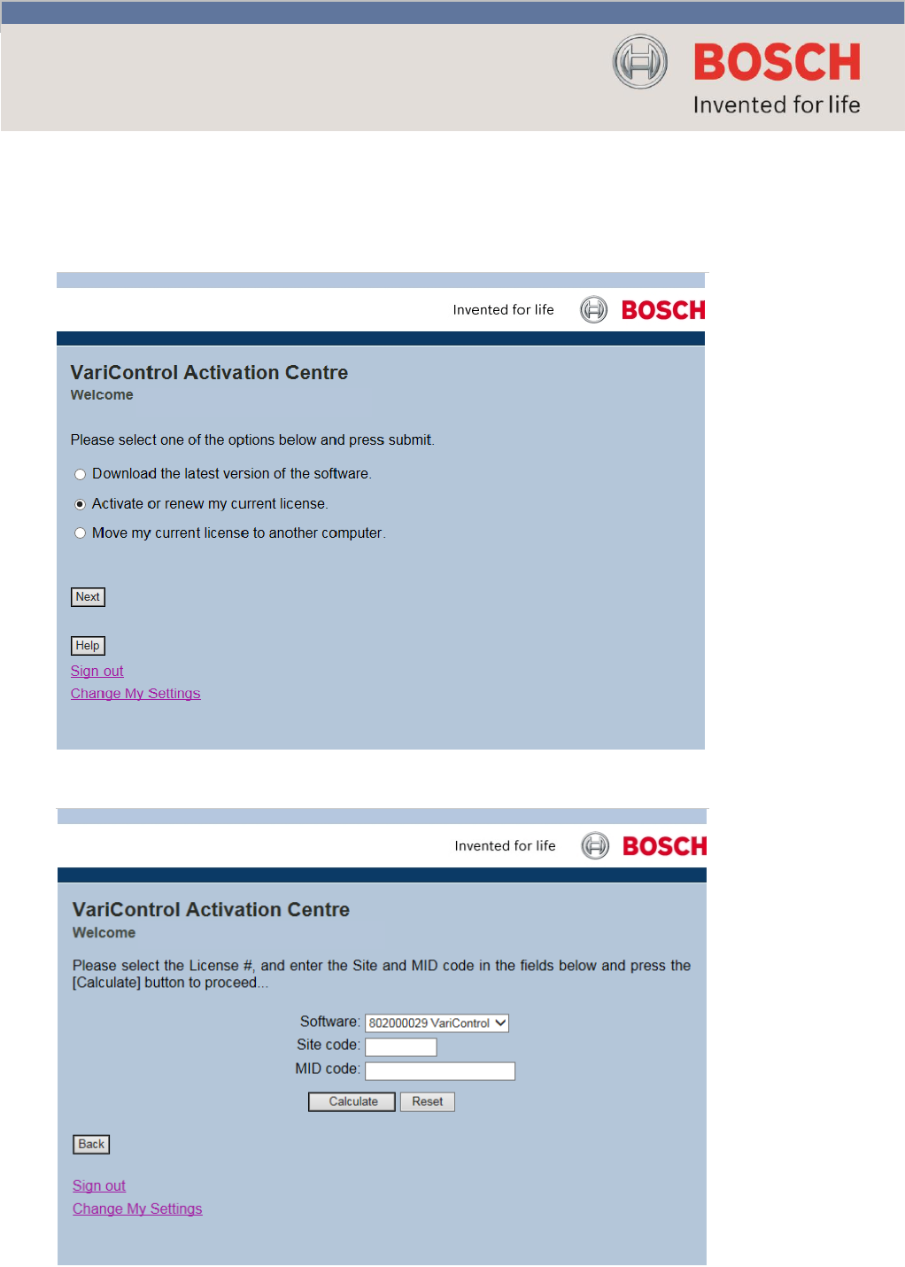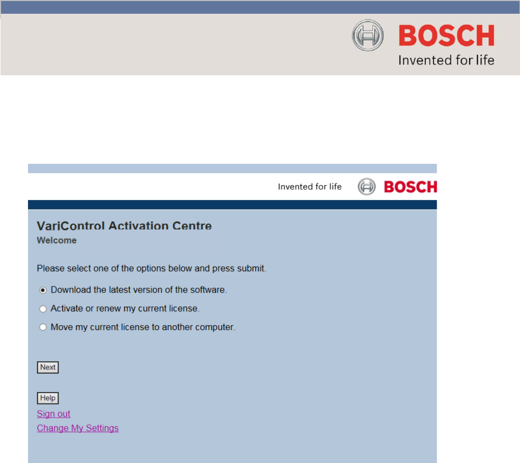 license window (Internet connection is required). Login to the VariControl Activation Centre