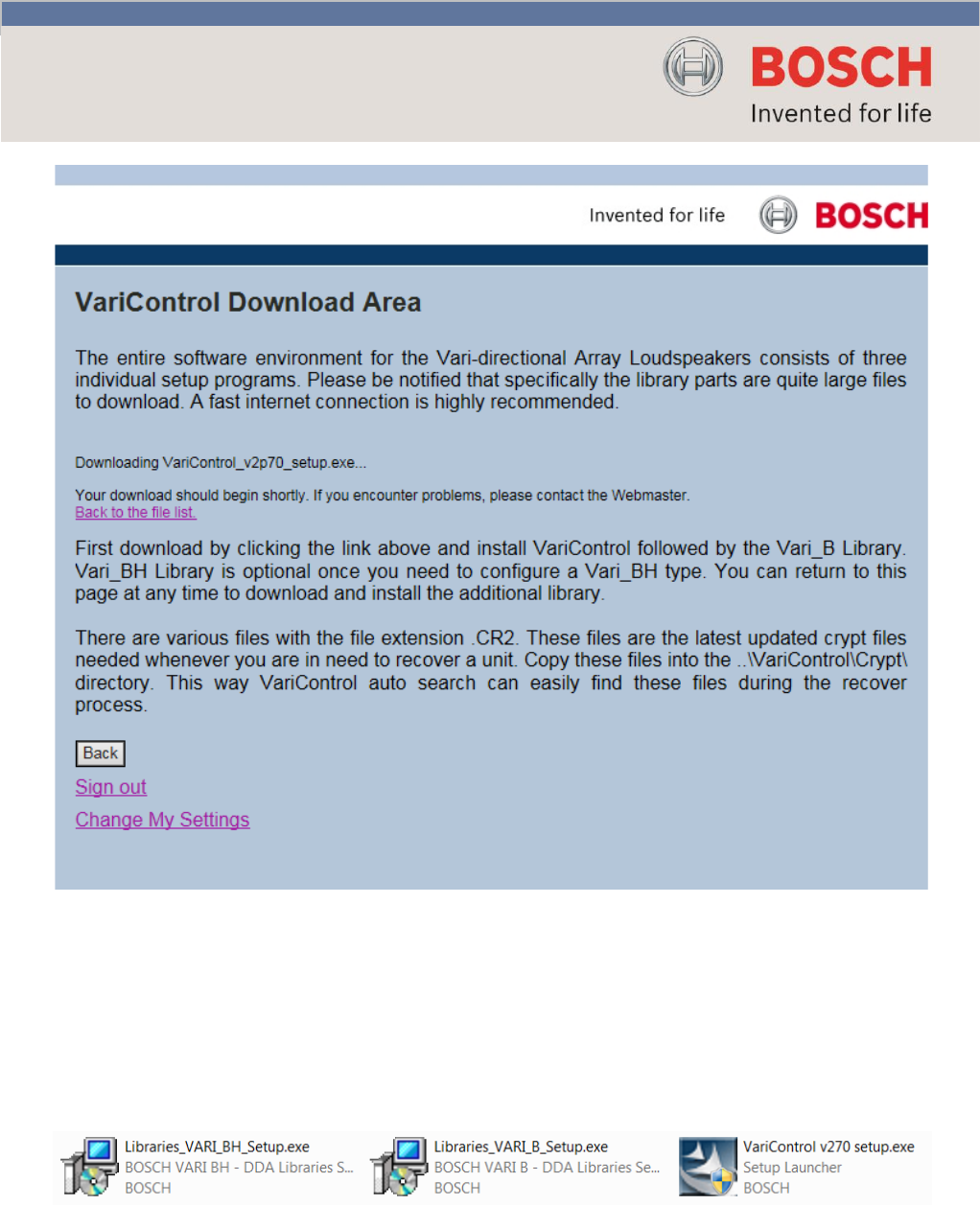 A new window called the VariControl Download Area will open. It contains the Vari firmware