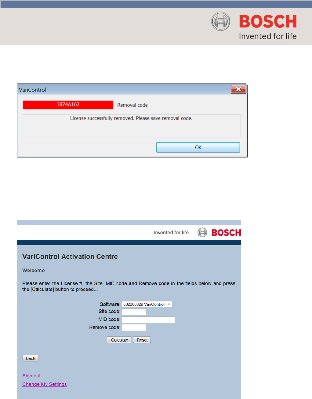 Click Yes and you will receive the remove code in the next window that will appear, see