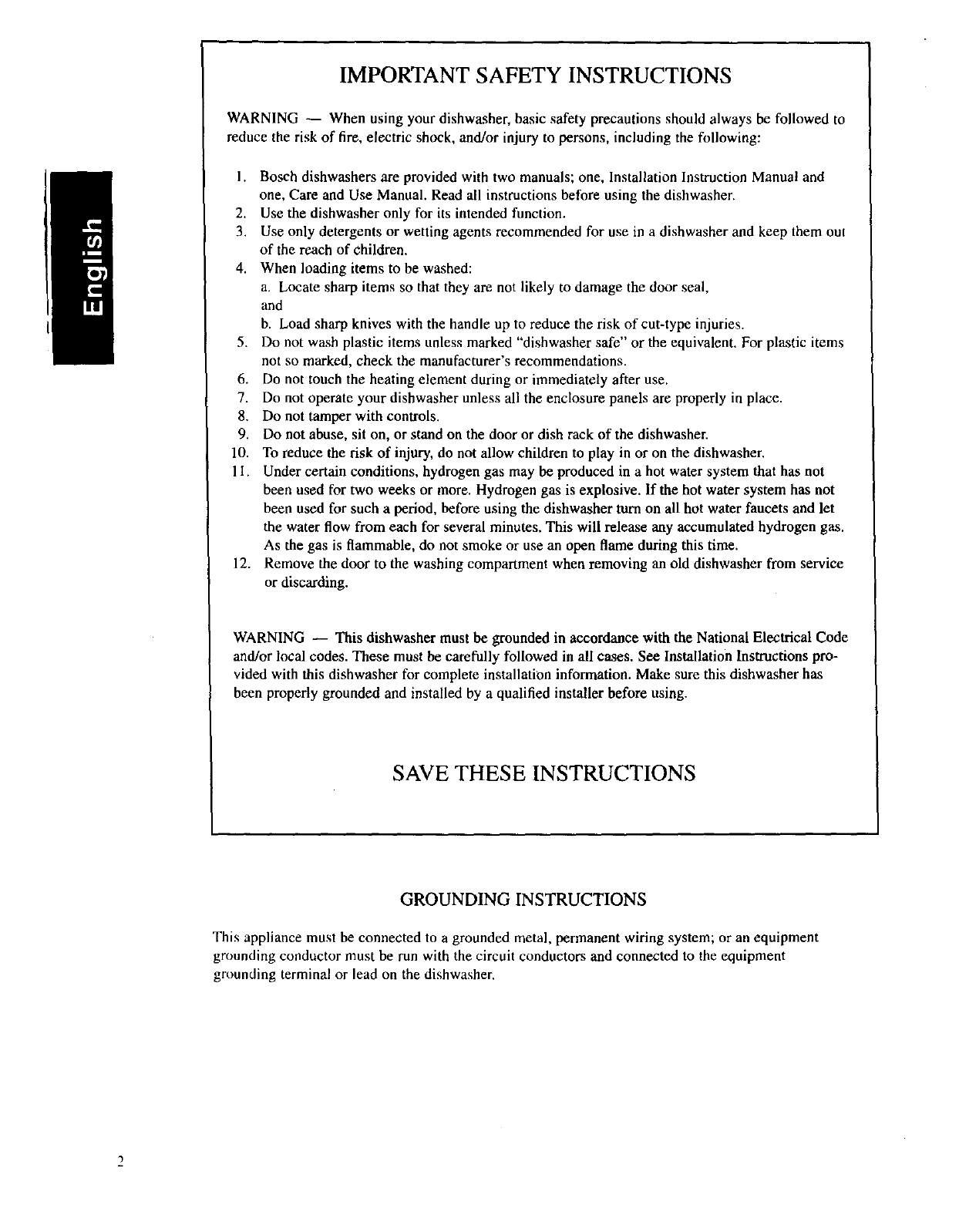 I. Bosch dishwashers are provided with two manuals; one, Installation Instruction Manual and