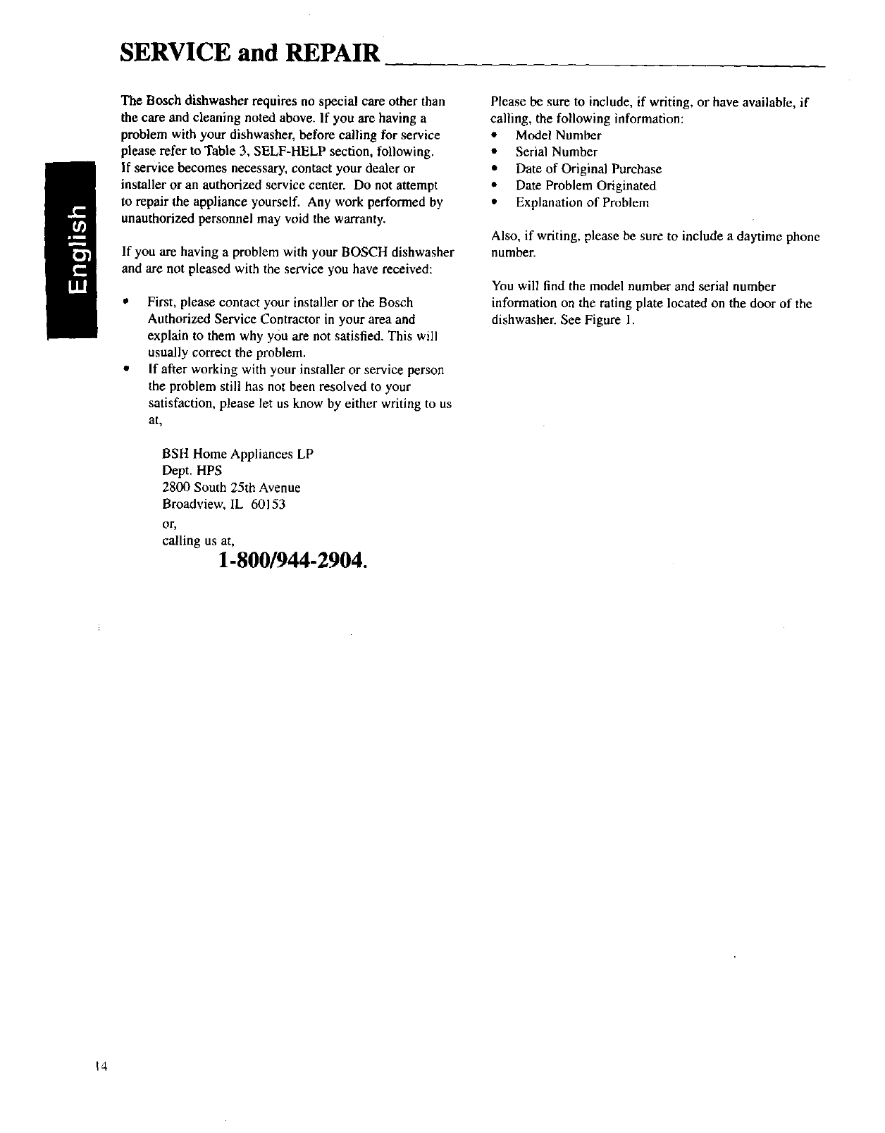 OR WRITE BSII IlttME APPLIANCES LP DIRECTI.Y AT: UA/HPS, 28(g} SOUTH 25TH AVENUE, BR{}ADVIEW. B3.1NOIS 60153, BE SURF, TG