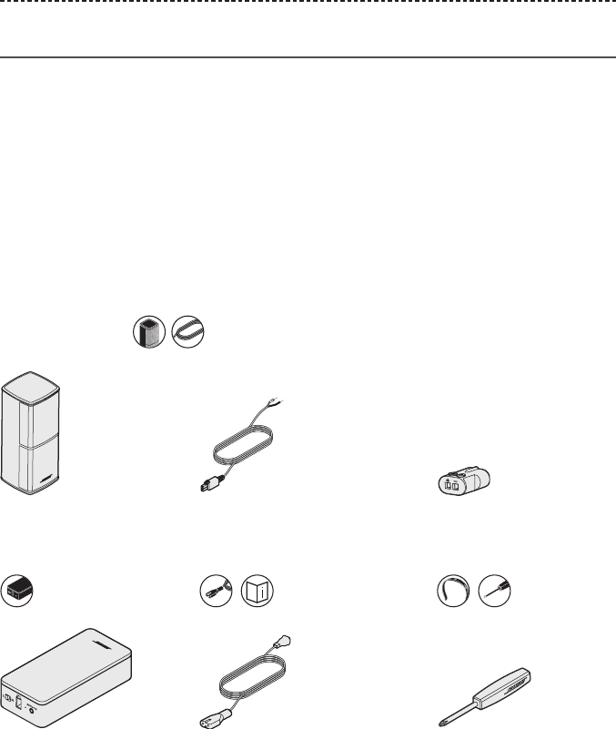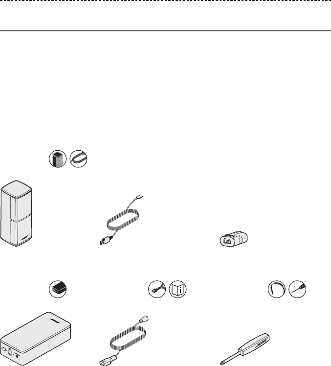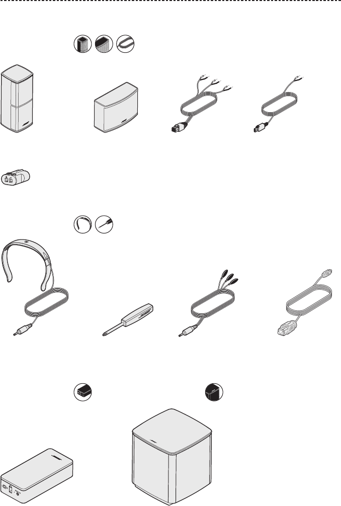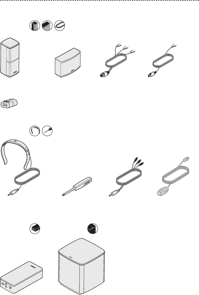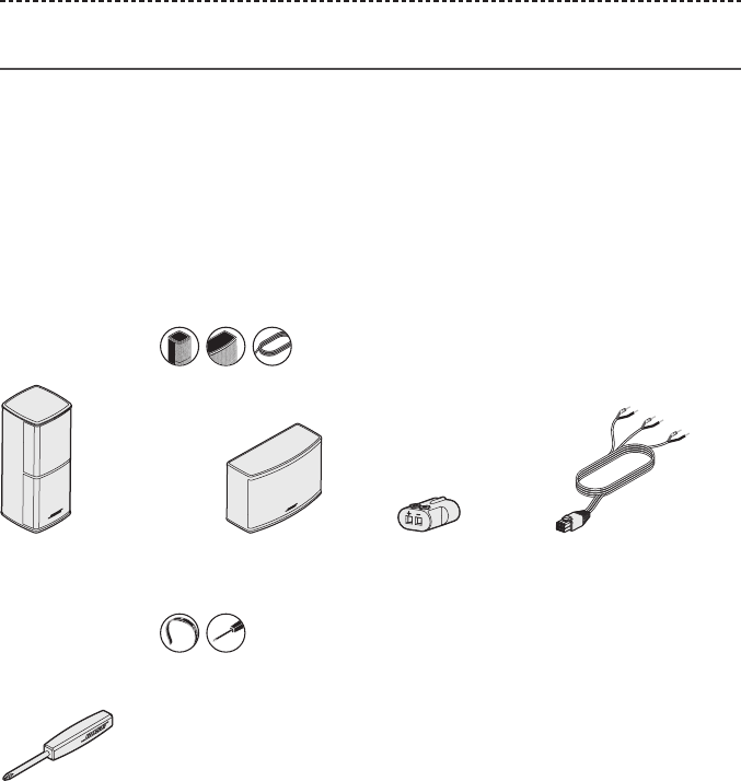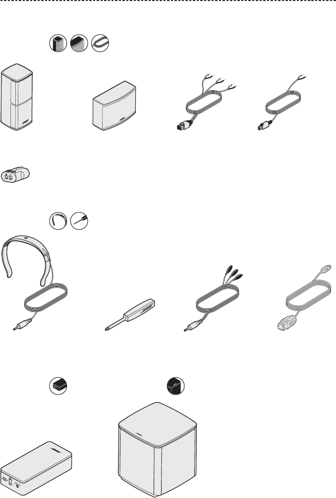 Enceintes Jewel Cube® (2) Câbles pour enceintes arrière (2) Adaptateurs AC-2 (2)