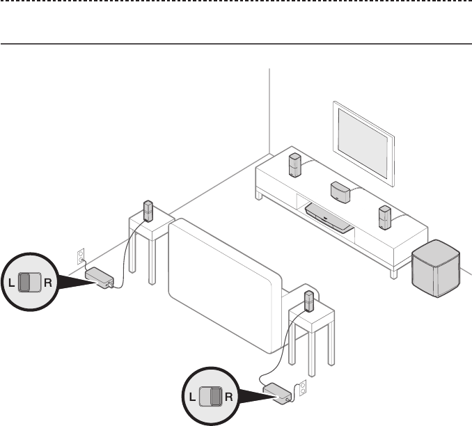 Remarque: vérifiez que l’un des adaptateurs sans fil est toujours réglé sur L (gauche)