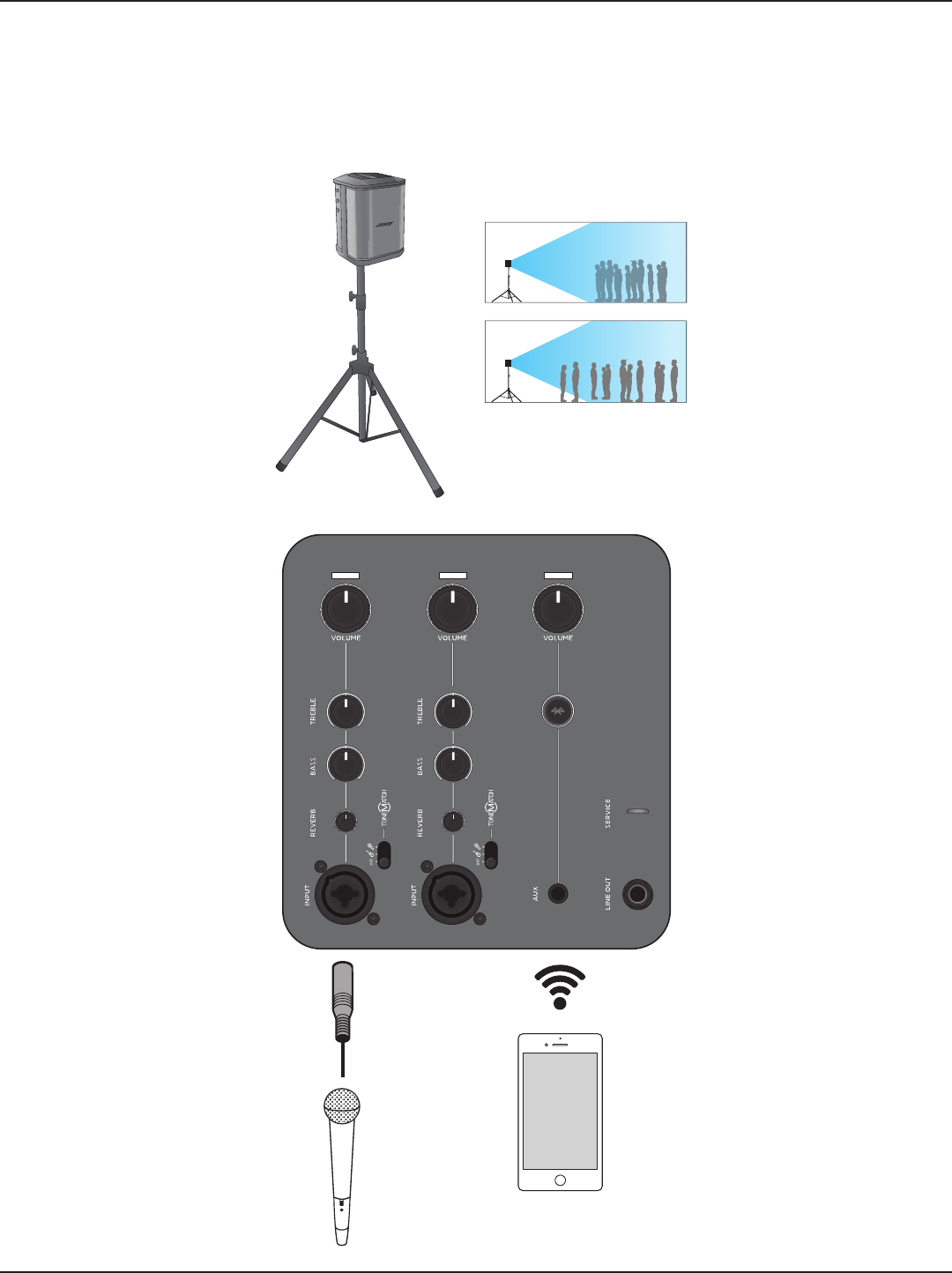 Do NOT use the Bose S1 Pro system with a tripod/stand that is unstable. The loudspeaker is only designed for use on a