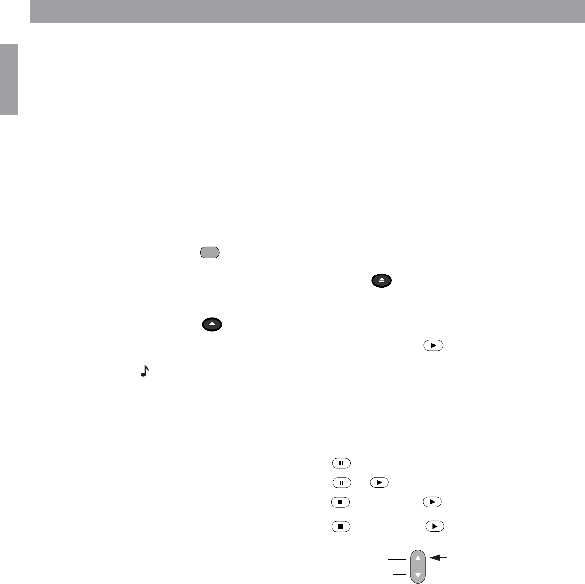 The disc does not play • Check to see if the play symbol in the display is lit.