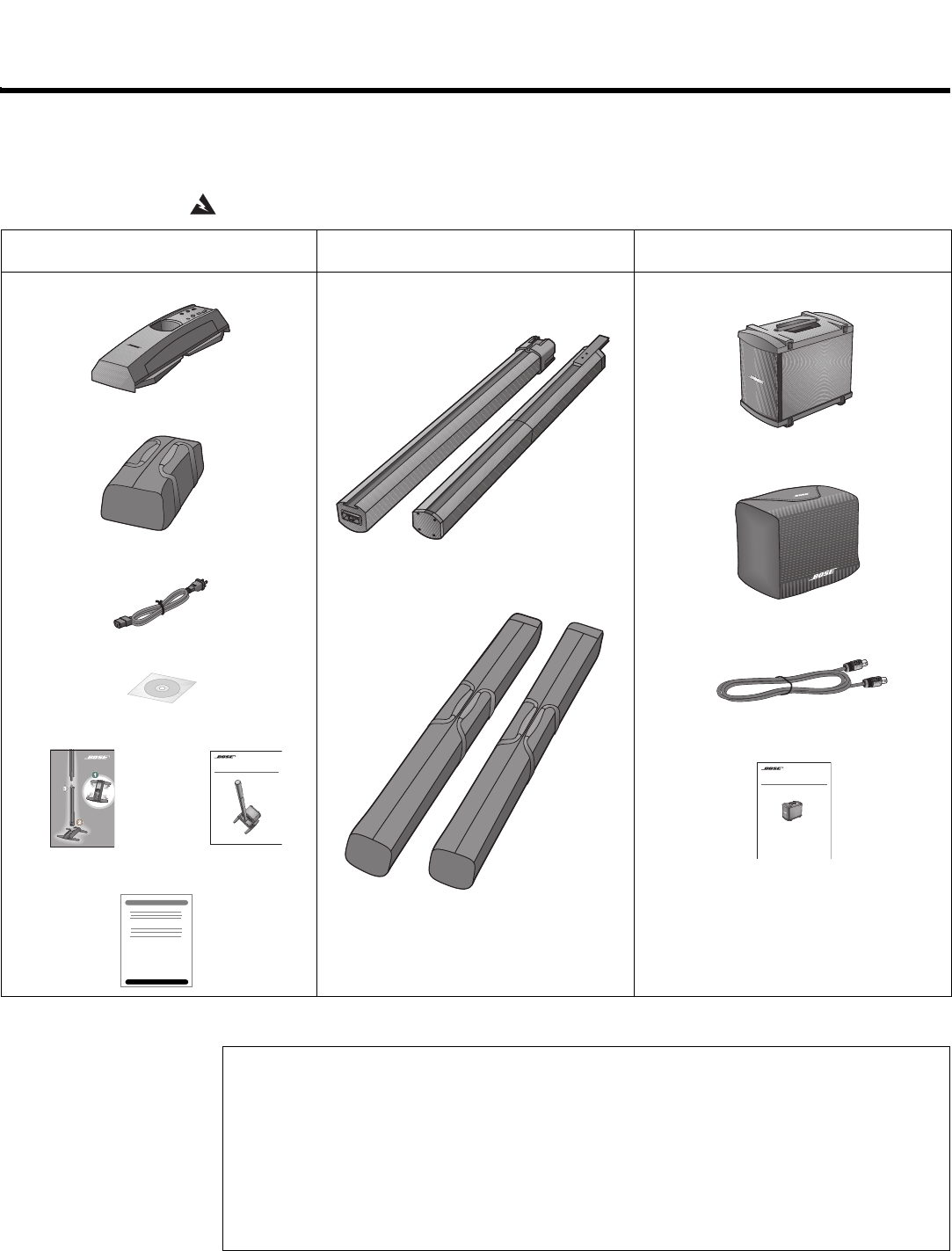 Visit www.Bose.com/musicians, or call (800) 905-0886 for accessory information.