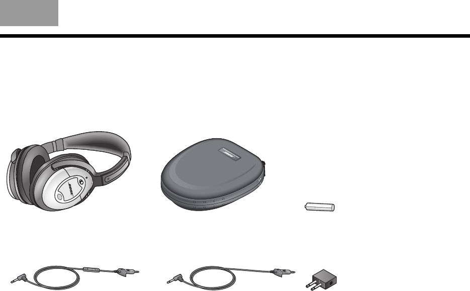 ❏QuietComfort® 15 headphones ❏Carrying case ❏Battery (AAA)