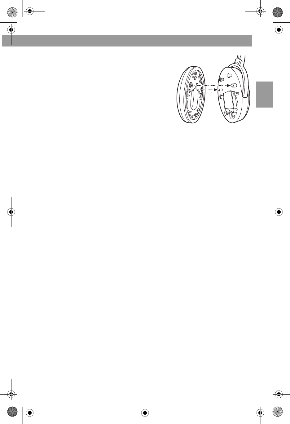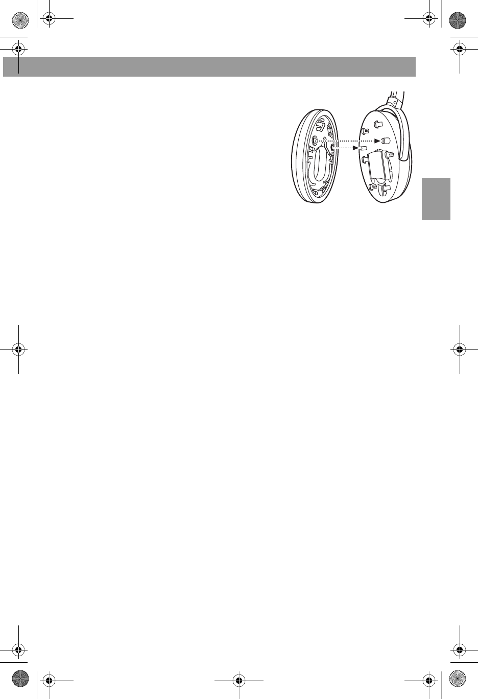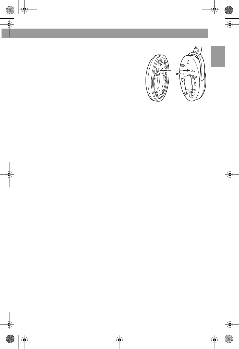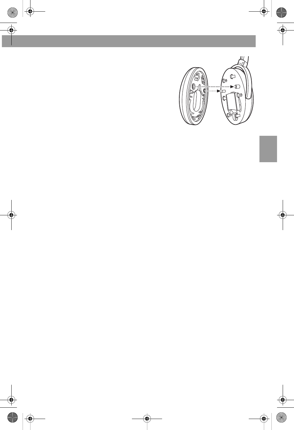 1. パット裏の 2 つの穴をイヤーカップの 2 つのポー